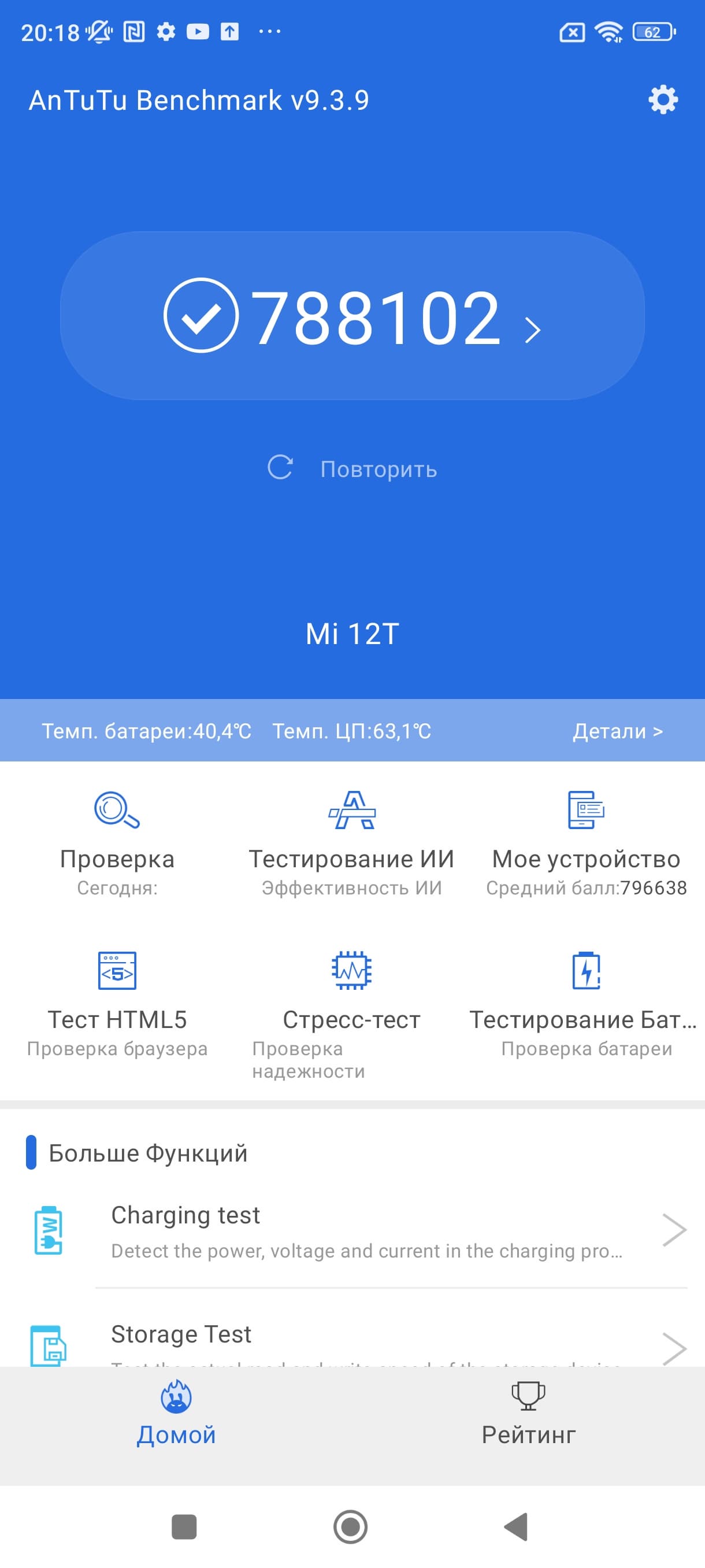 | AnTuTu (v9.x) (больше — лучше) | 788102 | 1034192 | 835915 | 727479 | 492381 |