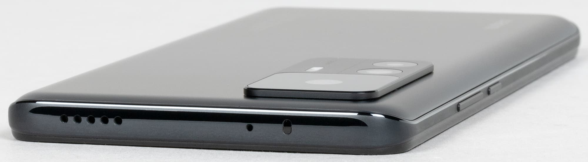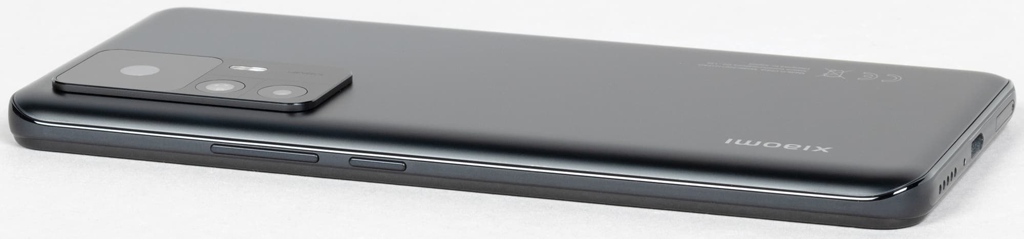 У Xiaomi 12T вполне консервативный дизайн с загнутыми краями задней стенки и зауженными боковыми гранями. Впрочем, они не настолько заострены, чтобы смартфон прокручивался в ладони. В целом, ширина боковин еще достаточна для крепкого удержания смартфона в руке. Другое дело, что довольно широкий и увесистый корпус значительно крупнее, чем у обычного Xiaomi 12.