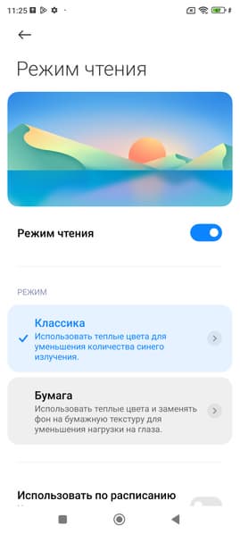 Конечно, есть режим с уменьшенной интенсивностью синей компоненты. Напомним, что, в принципе, яркий свет может приводить к нарушению суточного (циркадного) ритма (см. статью про iPad Pro с дисплеем 9,7 дюйма), но все решается снижением яркости до низкого, но еще комфортного уровня, а искажать цветовой баланс, уменьшая вклад синего, нет абсолютно никакого смысла.
