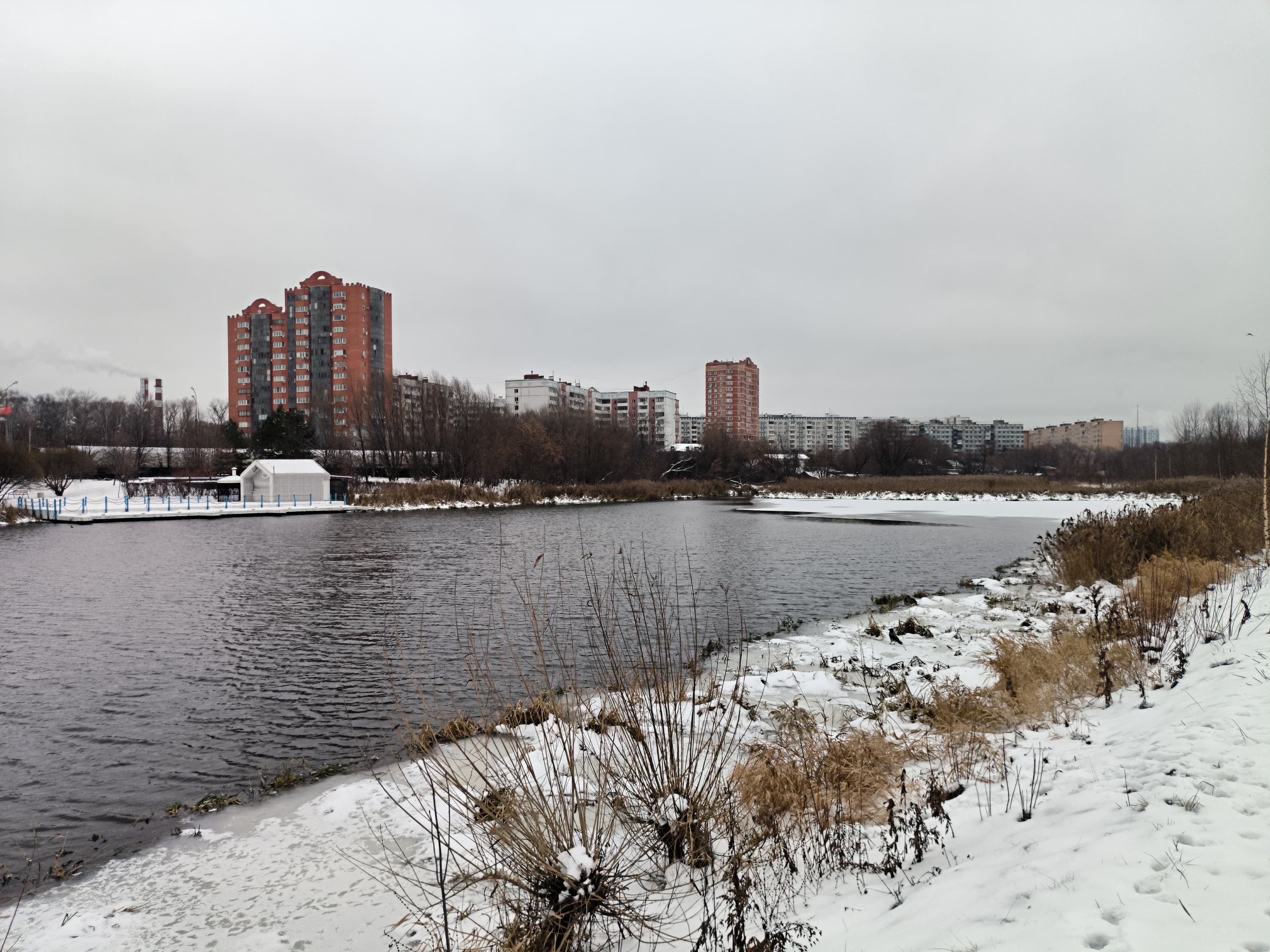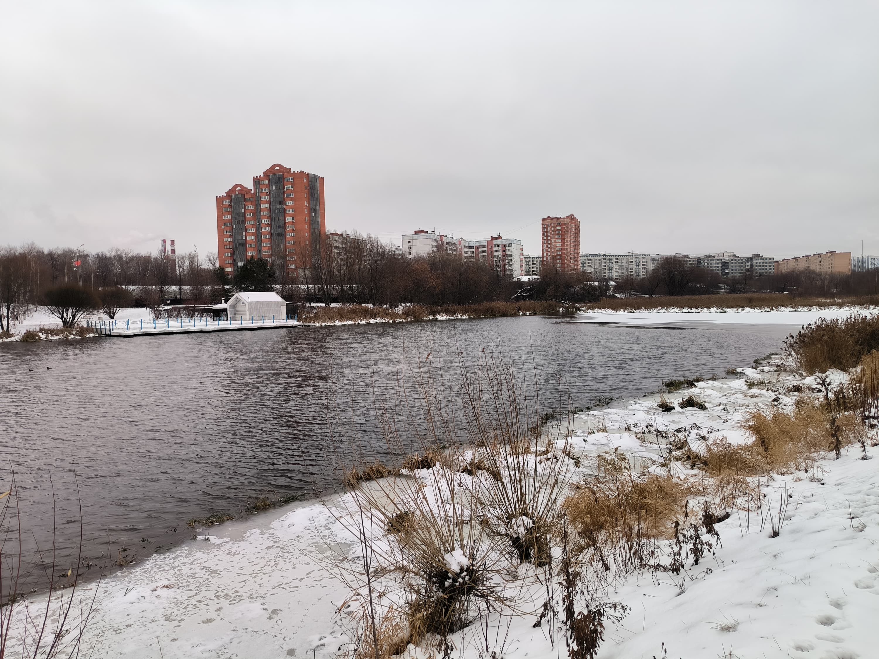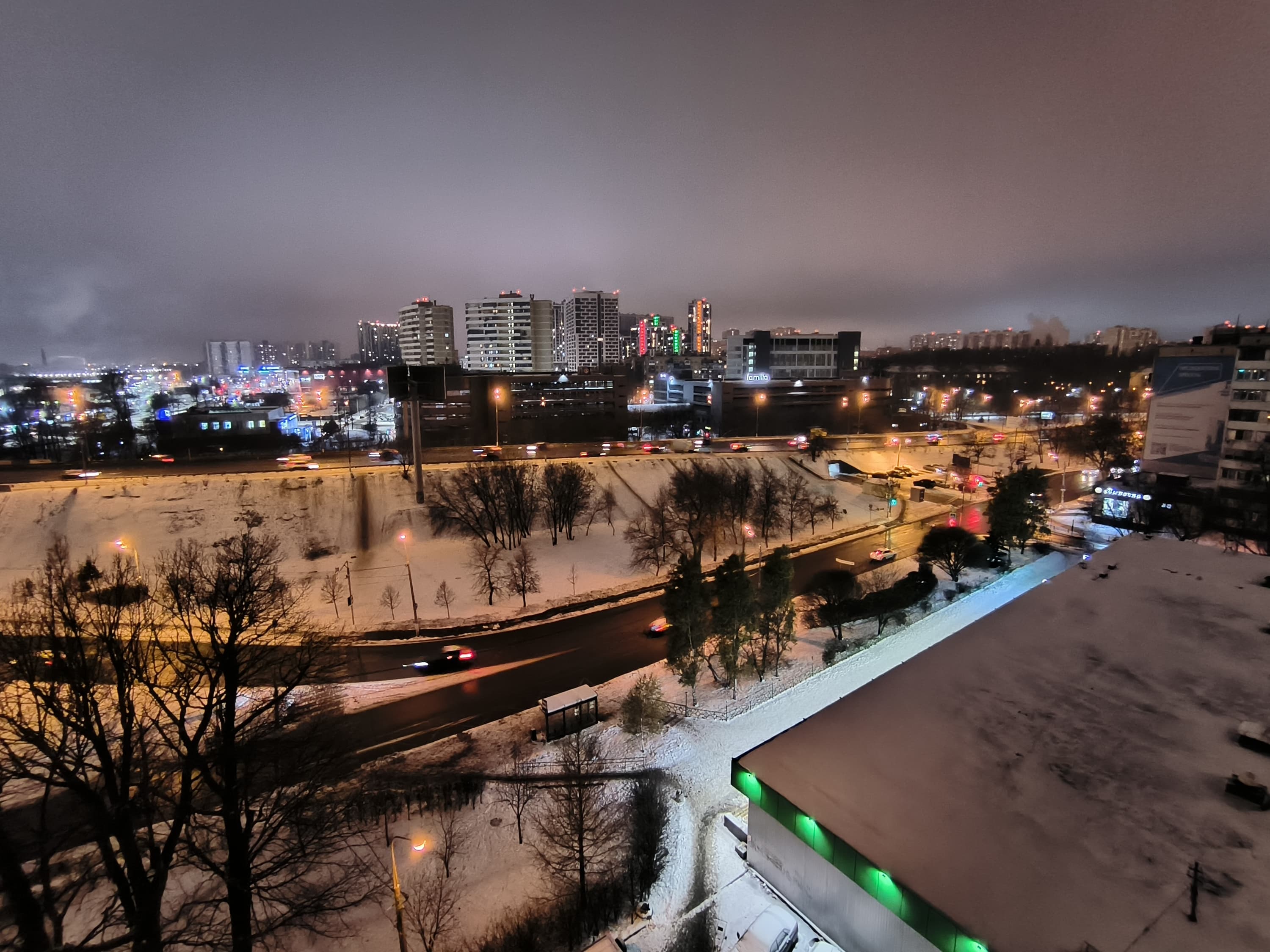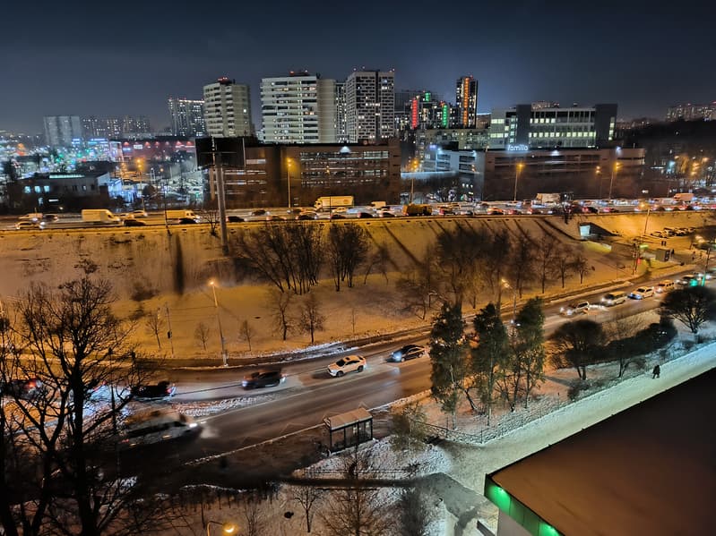 В целом, камера выдает картинку очень высокого качества с отличной детализацией, правильной цветопередачей, неплохой контрастностью. Оптика качественная, пятен и смазов не замечено, кроме самых углов кадра (это «родовой» недостаток широкоугольных камер, но и то смартфон неплохо с ним справляется). Динамический диапазон сенсора достаточен для передачи зимнего освещения в плане проработки светлых участков неба и темных участков в тенях. При хорошем освещении эта камера способна на большее, уровень вполне флагманский.
