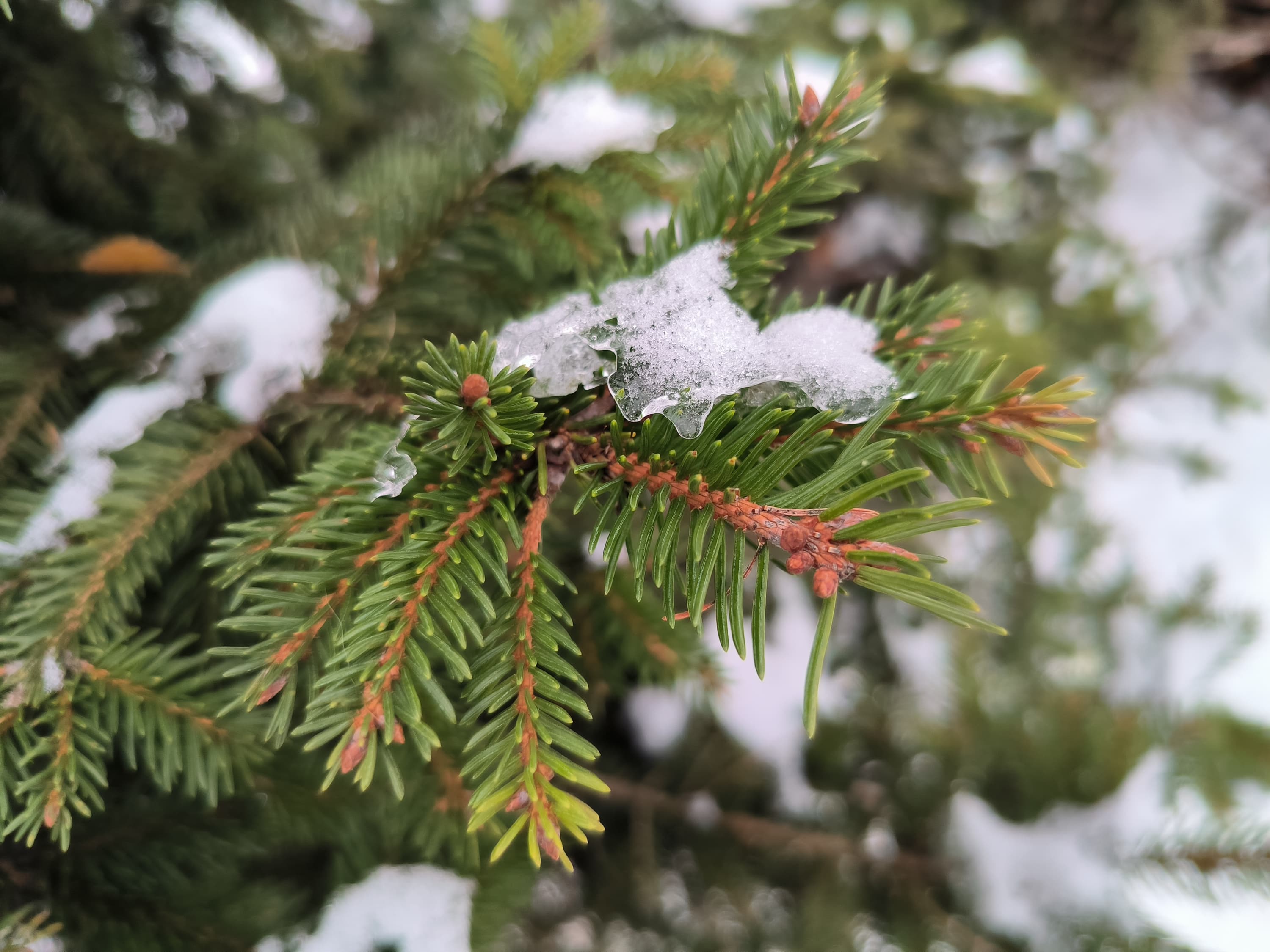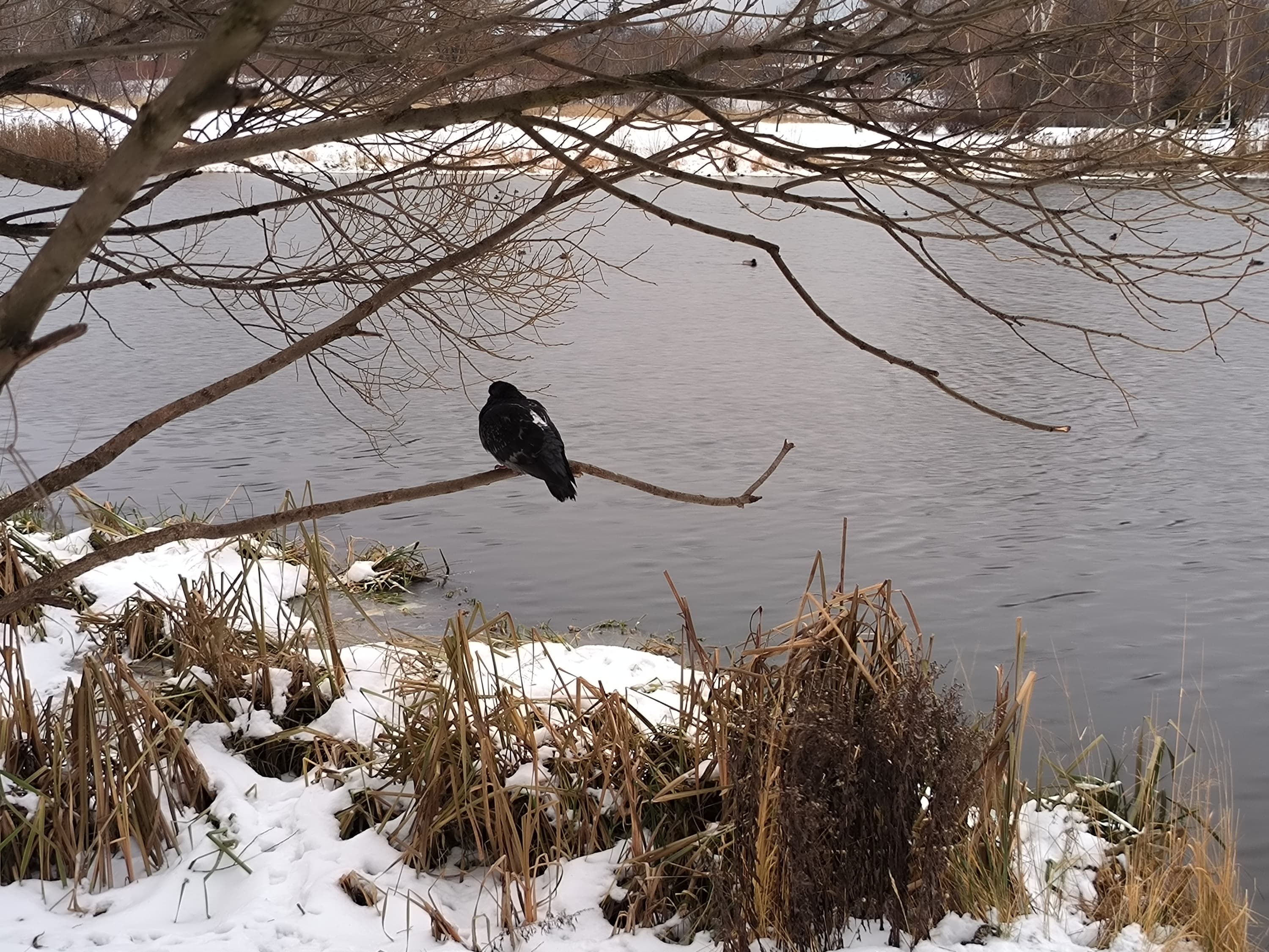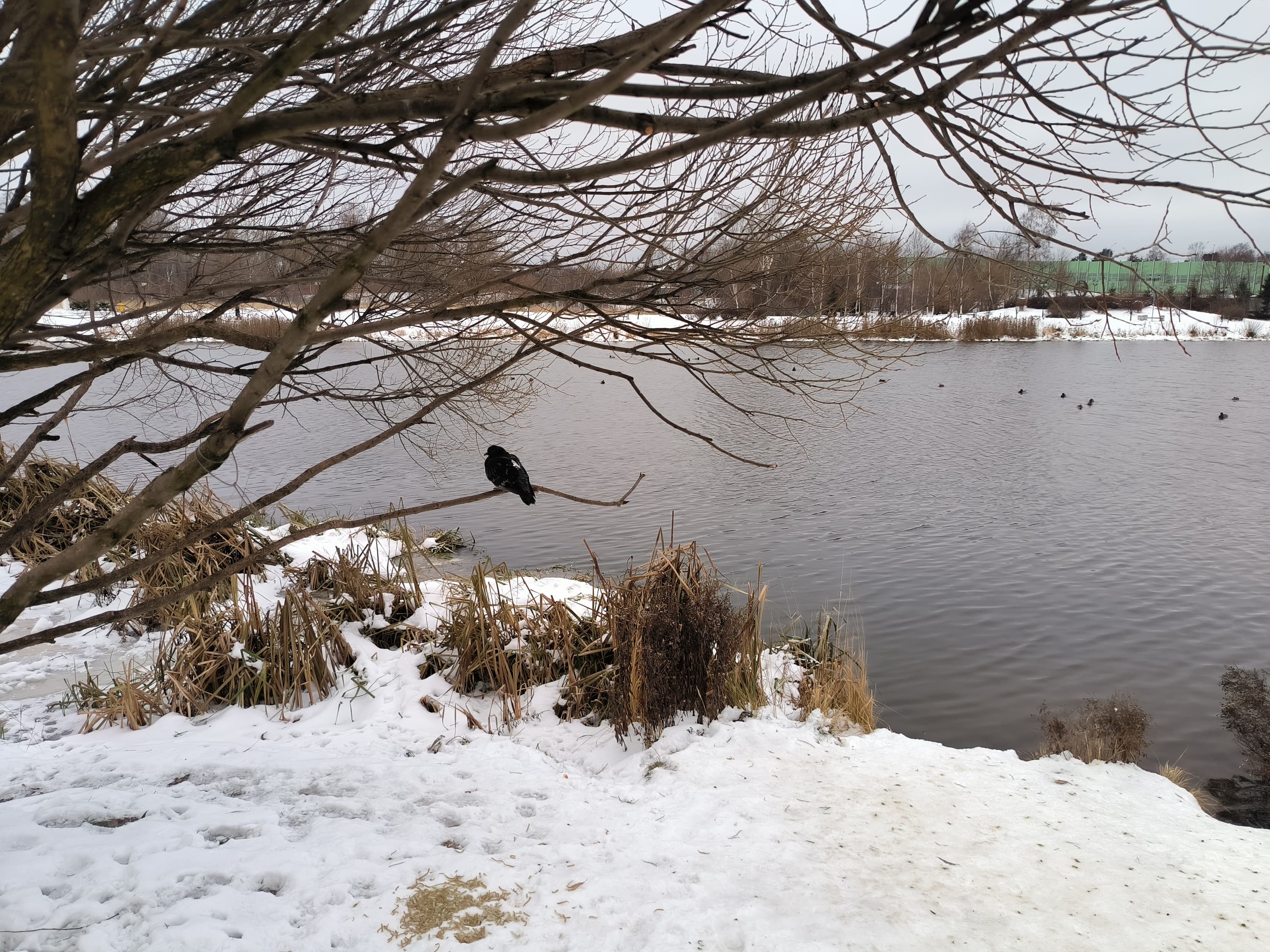 В целом, камера выдает картинку очень высокого качества с отличной детализацией, правильной цветопередачей, неплохой контрастностью. Оптика качественная, пятен и смазов не замечено, кроме самых углов кадра (это «родовой» недостаток широкоугольных камер, но и то смартфон неплохо с ним справляется). Динамический диапазон сенсора достаточен для передачи зимнего освещения в плане проработки светлых участков неба и темных участков в тенях. При хорошем освещении эта камера способна на большее, уровень вполне флагманский.