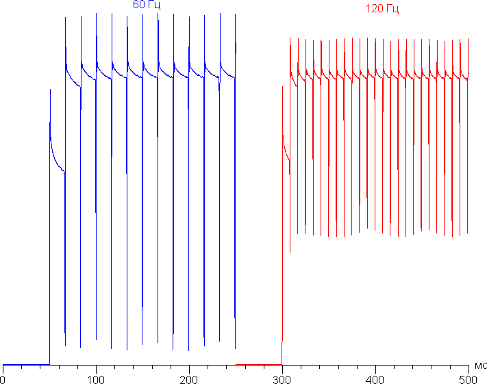 В режиме 120 Гц плавность прокрутки заметно повышается. Посмотрим, изменится ли при этом характер модуляции: