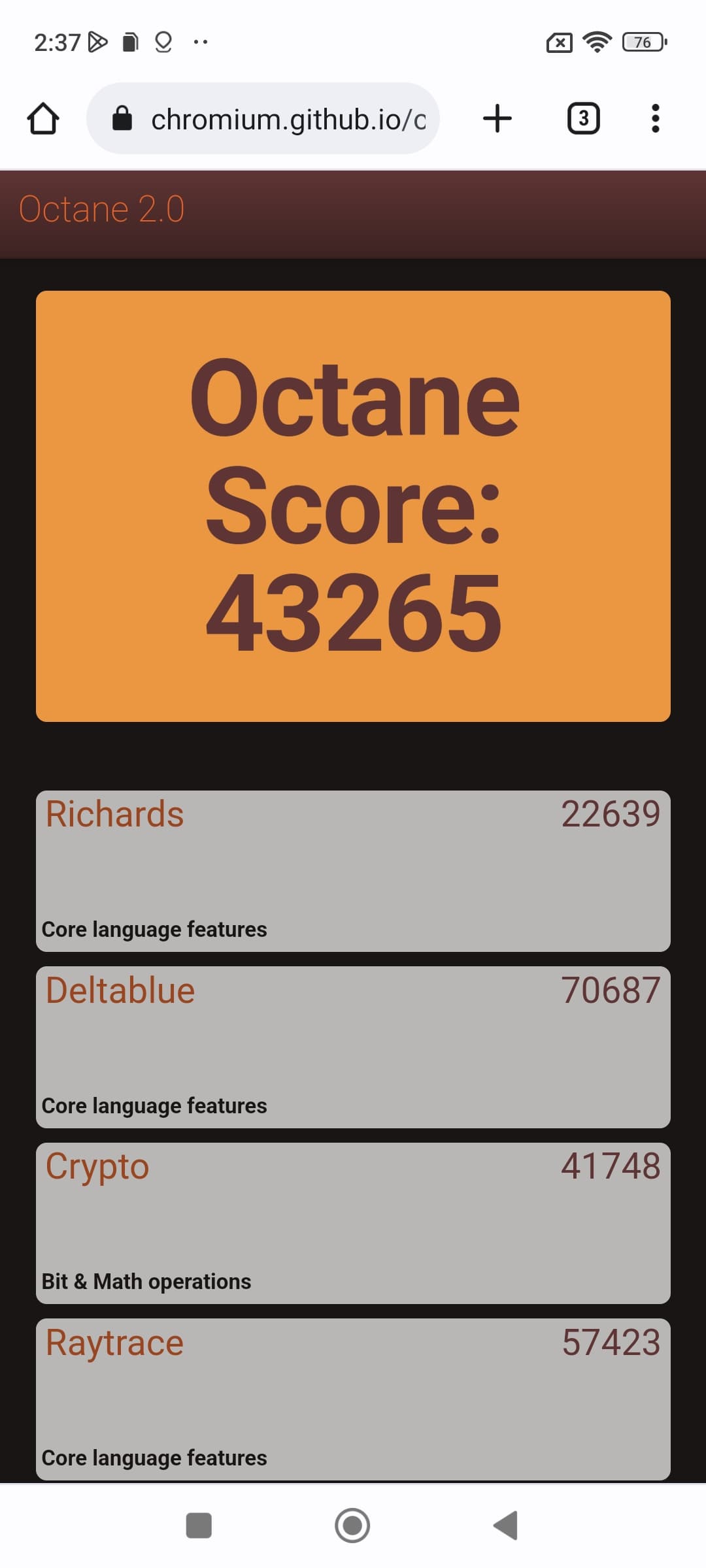 | Google Octane 2 (больше — лучше) | 43265 | 30849 | 36245 | 31919 | 54735 |