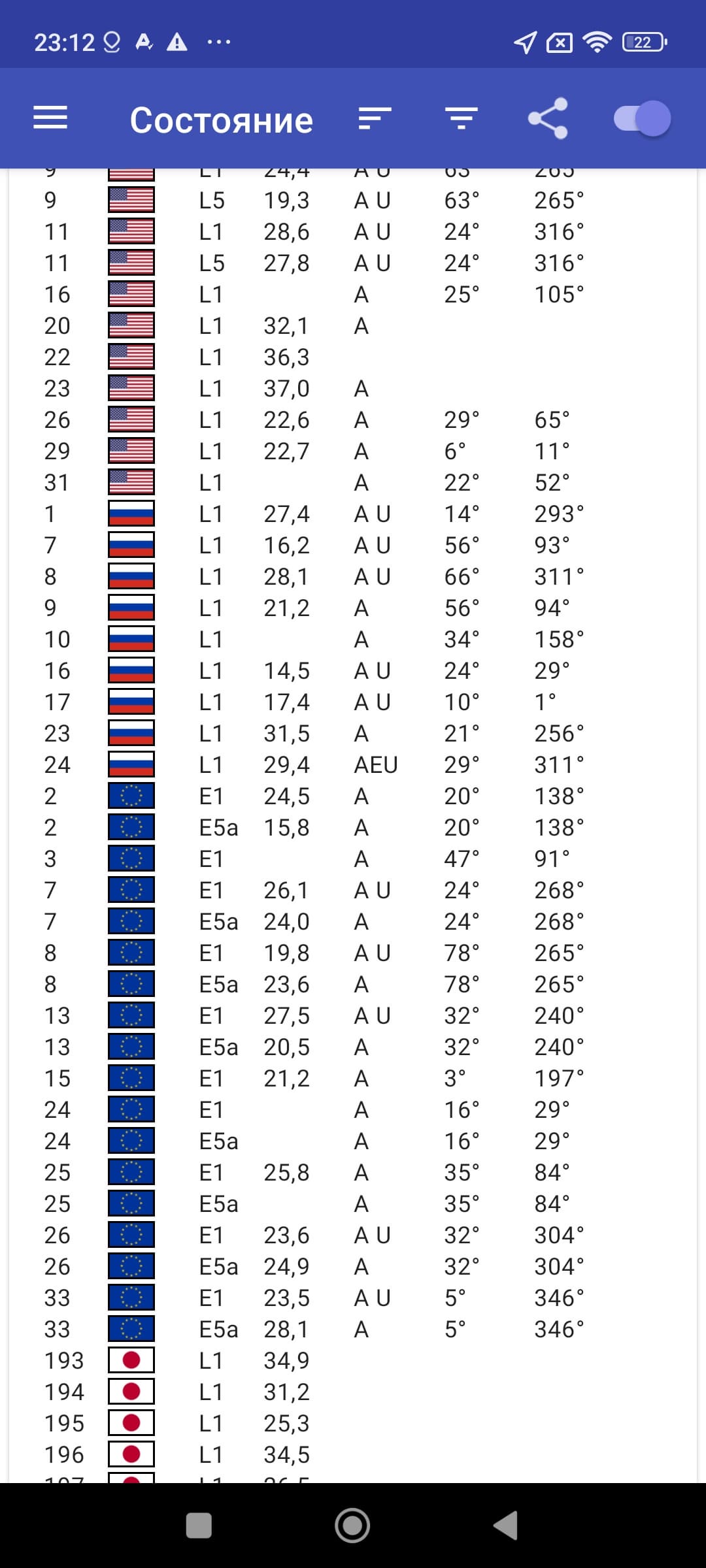 - GPS/A-GPS, Глонасс, BDS, Galileo, QZSS, NavIC