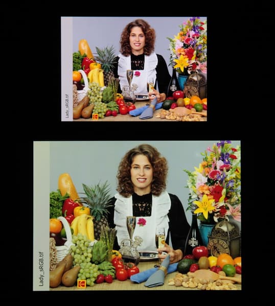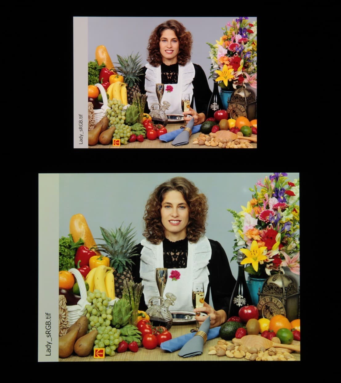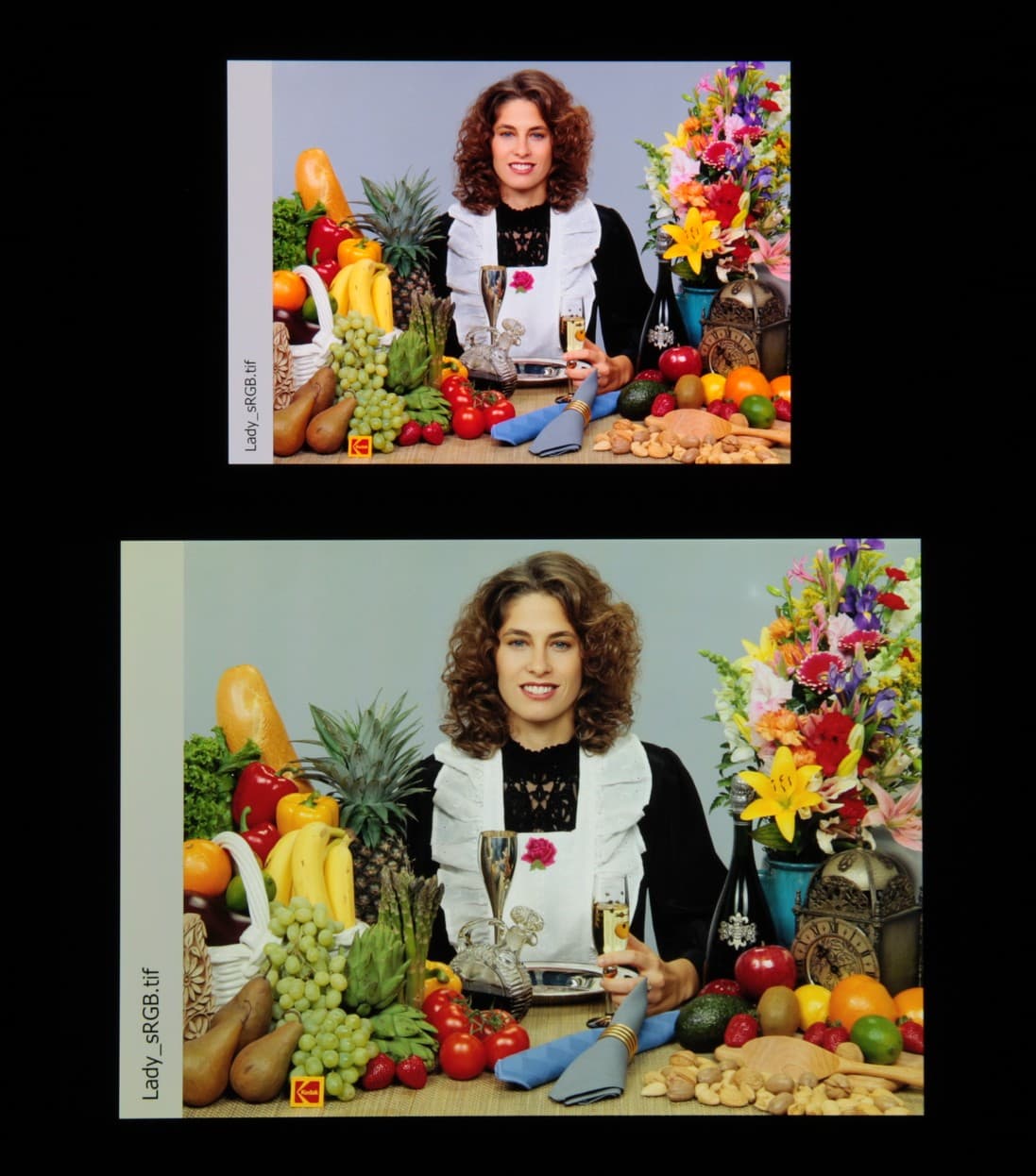 Отметим, что на экранах с широким цветовым охватом без соответствующей коррекции цвета обычных изображений, оптимизированных для устройств sRGB, выглядят неестественно насыщенными. Отсюда и рекомендация: в большинстве случаев смотреть кино, фотографии и все естественное лучше при выборе профиля Стандартные. Профиль Яркие уместен при просмотре материала с охватом DCI-P3, принятым в цифровом кинематографе, но в быту встречающимся редко.