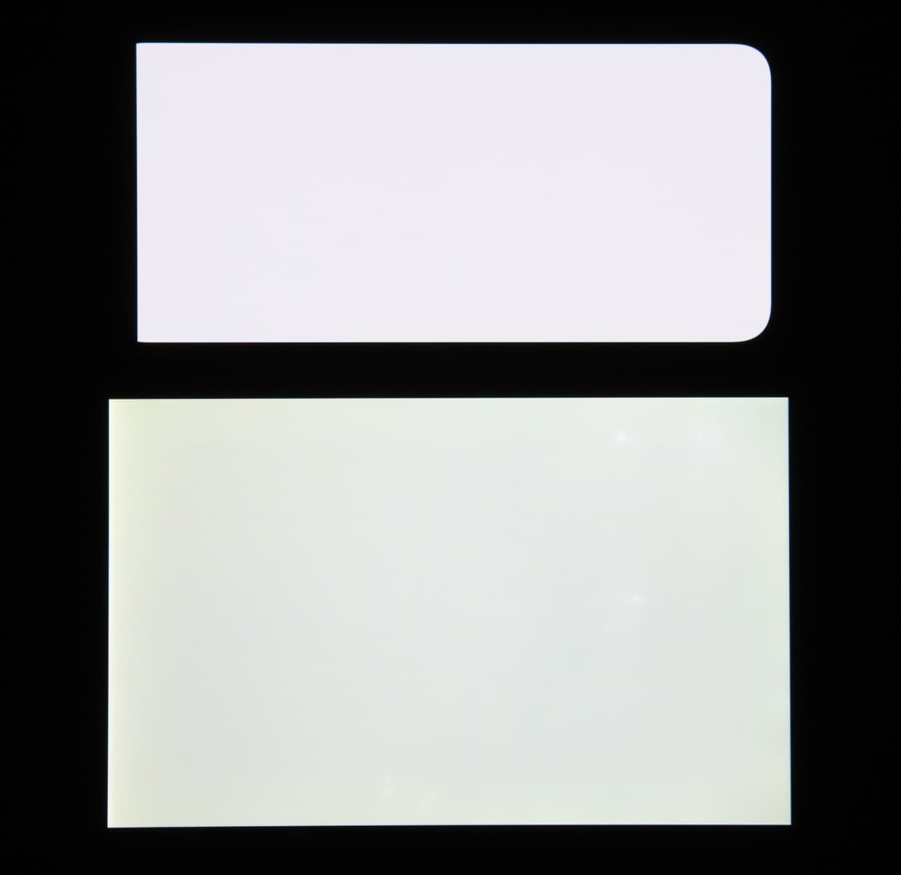 Яркость под углом у обоих экранов заметно уменьшилась (чтобы избежать сильного затемнения, выдержка увеличена в сравнении с предыдущими фотографиями), но в случае Xiaomi 13 падение яркости меньше. В итоге при формально одинаковой яркости экран Xiaomi 13 визуально выглядит гораздо более ярким (в сравнении с ЖК-экранами), так как на экран мобильного устройства часто приходится смотреть как минимум под небольшим углом.