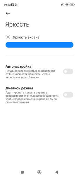При ручном управлении яркостью и при выводе белого поля во весь экран максимальное значение яркости составило около 475 кд/м² в обычных условиях, а на очень ярком свету и в случае автоматической регулировки оно может повышаться до 1150 кд/м². Это очень высокое значение. Также нужно учитывать, что для этого типа экрана чем меньше площадь белого на экране, тем он светлее, то есть фактическая максимальная яркость белых участков будет почти всегда выше указанных значений. В итоге, учитывая отличные антибликовые свойства, читаемость днем на солнце, должна быть на хорошем уровне. При ручном управлении и при включении функции Дневной режим на очень ярком свету яркость повышается до 475 кд/м², даже если она была установлена на меньшее значение.