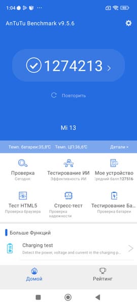 | AnTuTu (v9.x) (больше — лучше) | 1274213 | 788102 | 835915 | 727479 | 815296 |