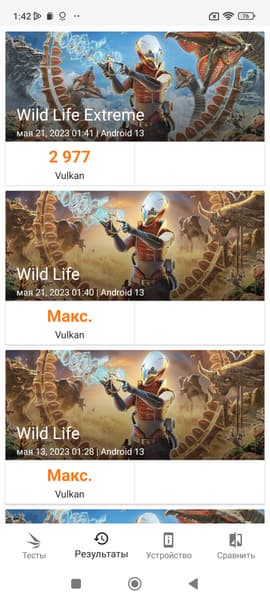 | 3DMark Wild Life Extreme Vulkan (больше — лучше) | 2977 | 1505 | 1752 | 1238 | — |