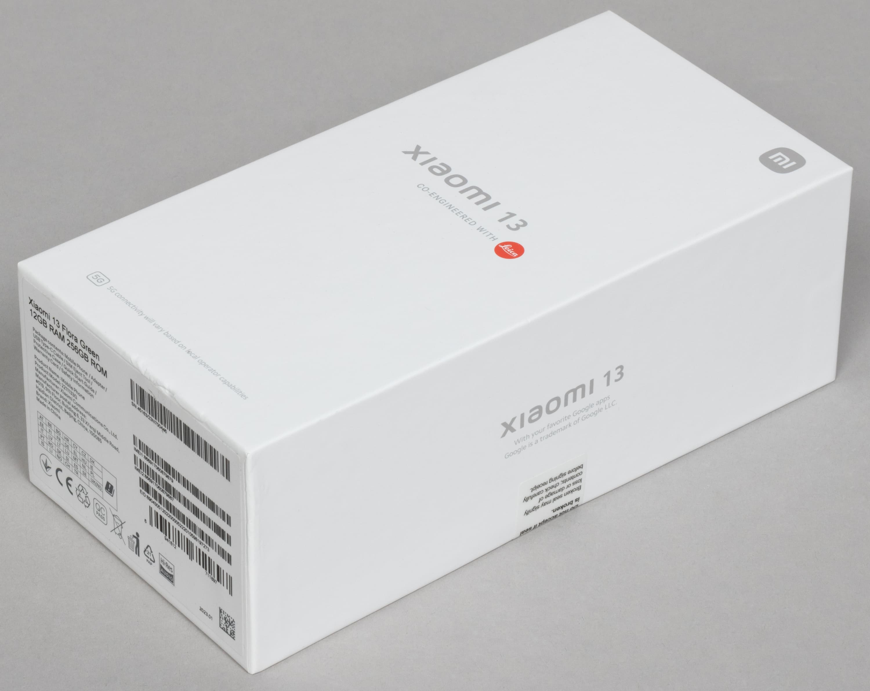 Xiaomi 13 поставляется в стандартной картонной коробке со стильным сдержанным оформлением.