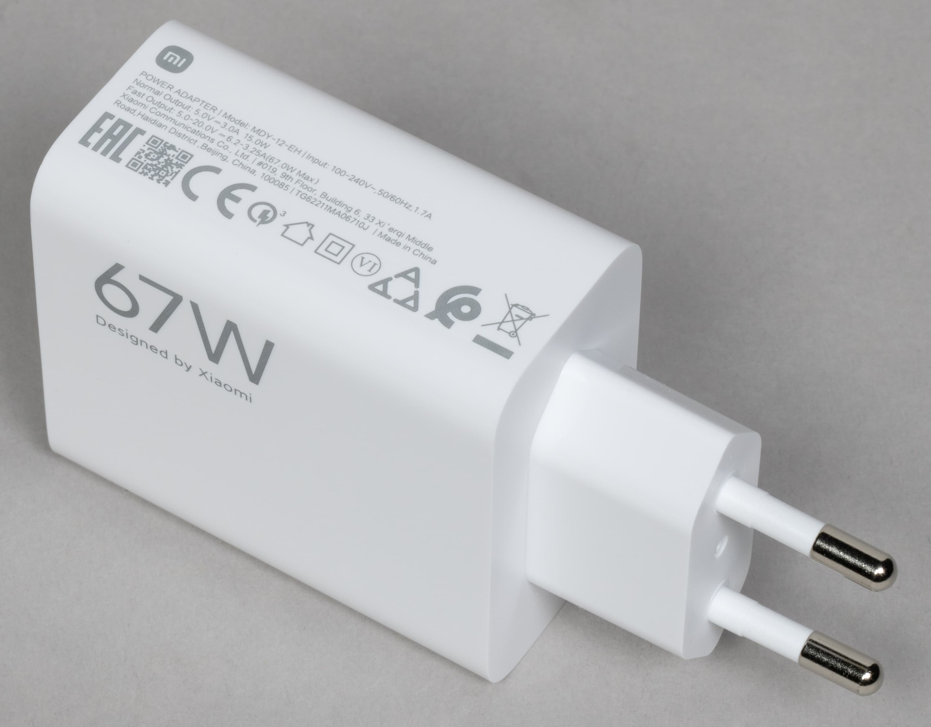 В комплекте есть защитный чехол и зарядное устройство с выходной максимальной мощностью 67 Вт.