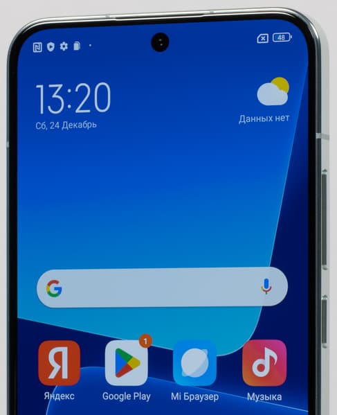 Xiaomi 13 получил самый актуальный дизайн. Сейчас в моде широкие боковые грани и плоские панели, и здесь именно этот вариант. Боковая рамка широкая и плоская, ребра не острые, так что в ладонь грани не врезаются. Переднее стекло Corning Gorilla Glass 5 плоское, без эффекта выпуклости и без загибов по бокам.