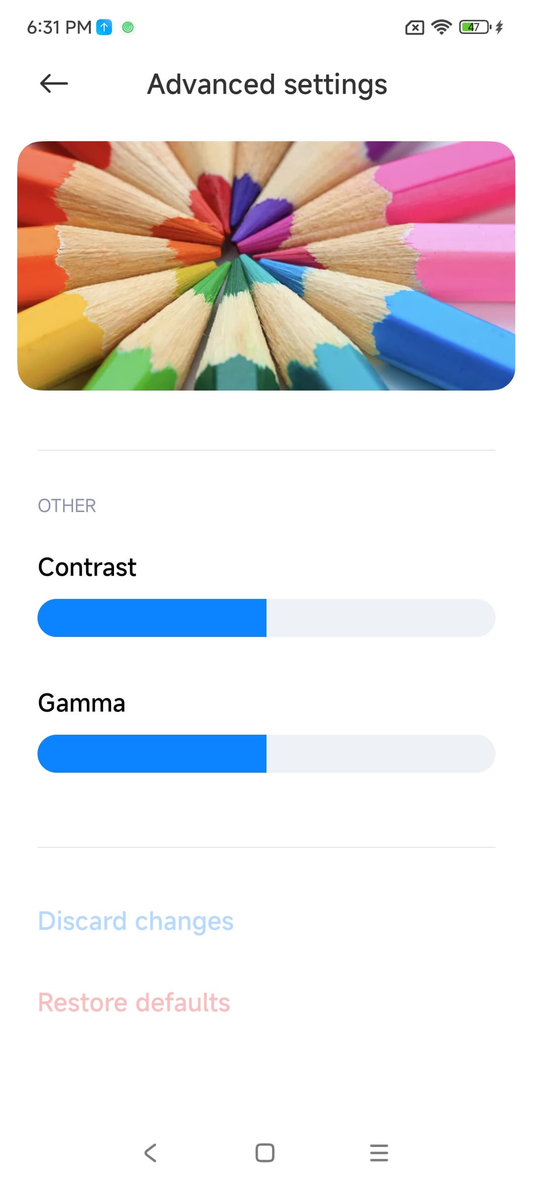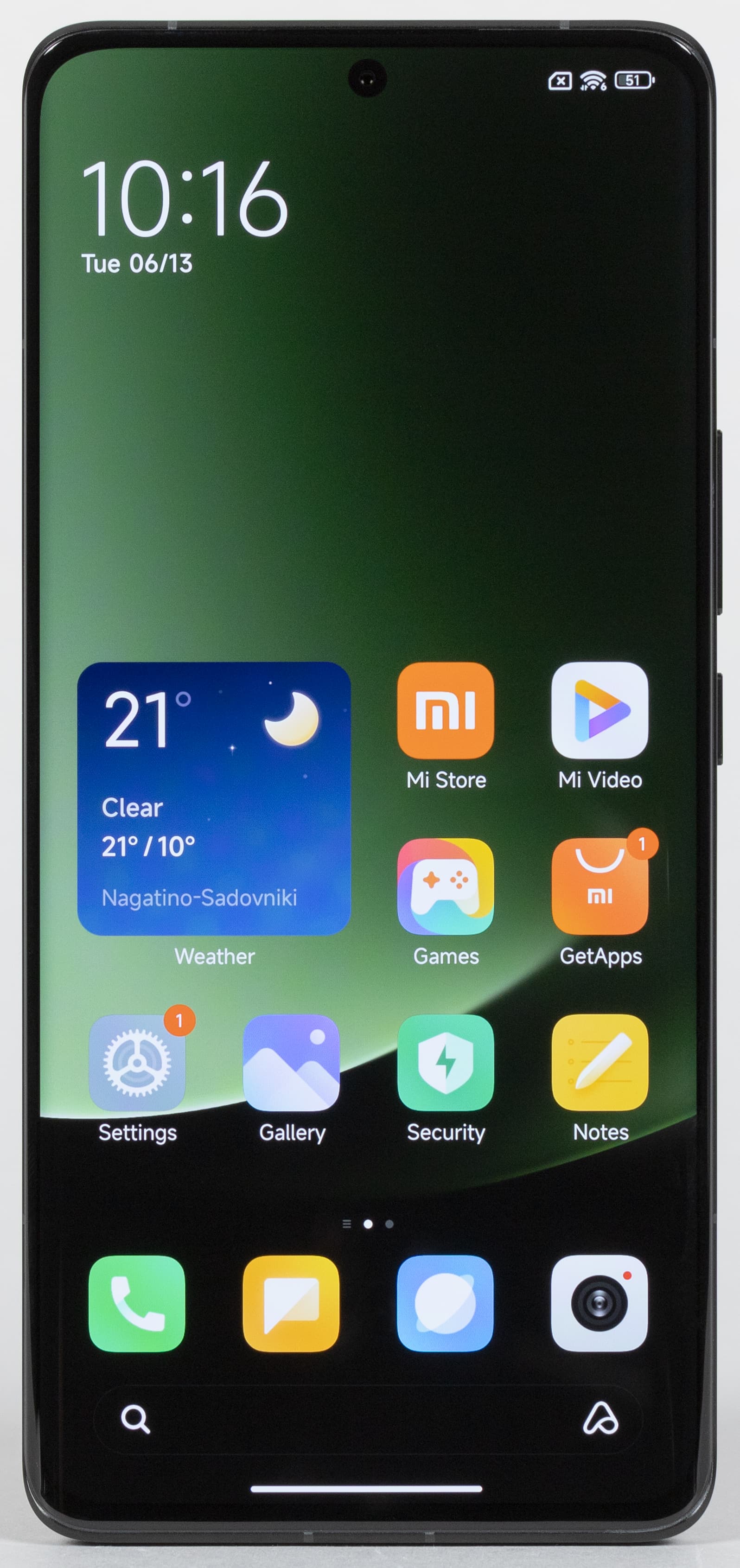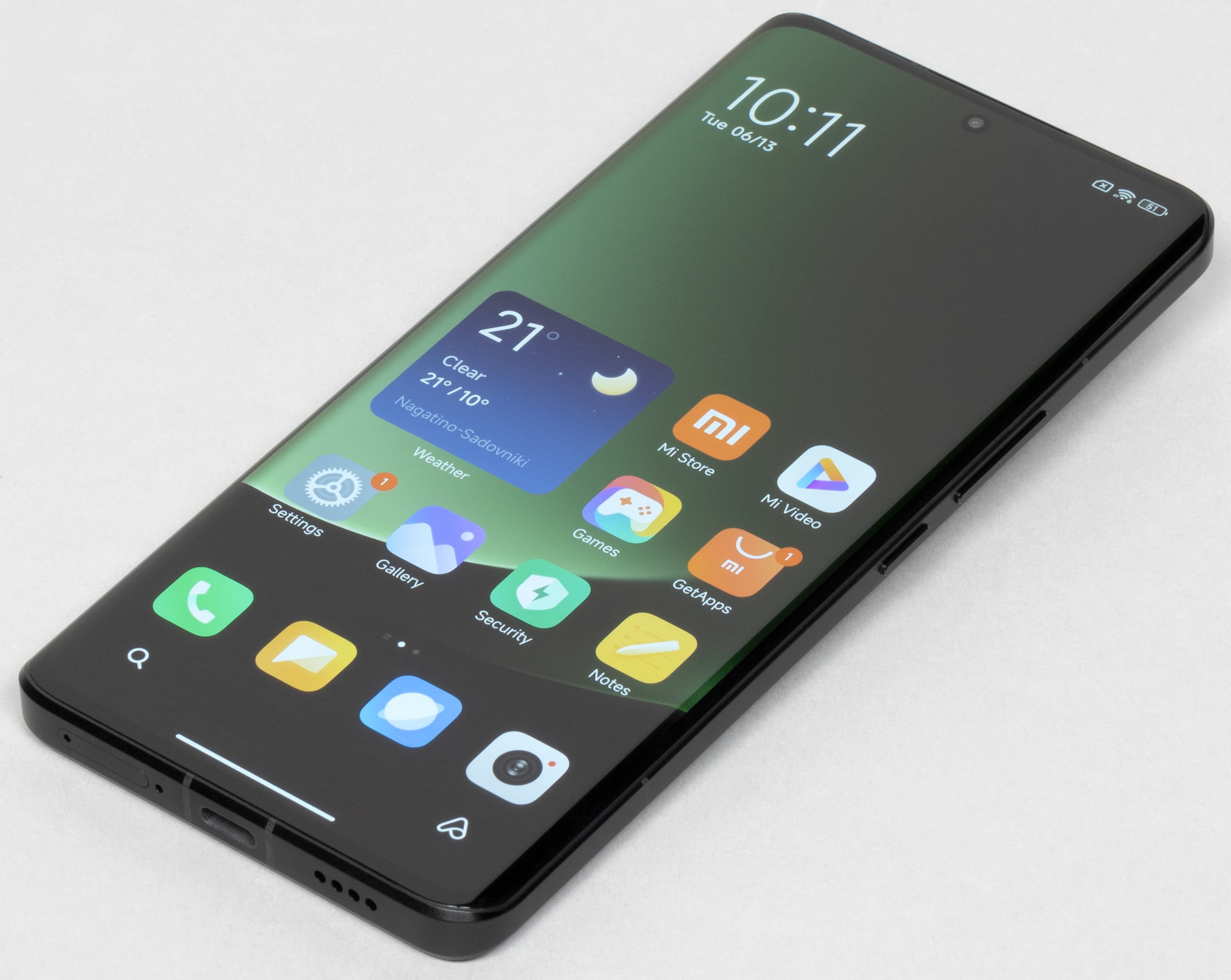 Насыщенность в норме, увеличения цветового контраста не наблюдается, а цветовой баланс заметно различается. Напомним, что фотография не может служить надежным источником сведений о качестве цветопередачи и приводится только для условной наглядной иллюстрации. В частности, выраженный красноватый оттенок белого и серого полей, присутствующий на фотографиях экрана смартфона, при перпендикулярном взгляде визуально отсутствует, что подтверждается аппаратными тестами с помощью спектрофотометра. Причина в том, что спектральная чувствительность матрицы фотоаппарата неточно совпадает с этой характеристикой человеческого зрения. Заметим, что в данном случае картинка занимает в высоту (при ландшафтной ориентации экрана) всю доступную для вывода изображения область и заходит на загнутые края экрана, что приводит к легкому затемнению и искажению цвета. Также на свету эти области почти всегда бликуют, что еще больше мешает при просмотре изображений, выведенных на весь экран. И даже картинка фильмов с соотношением сторон 16:9 заходит на загибы, что мешает при просмотре кино.