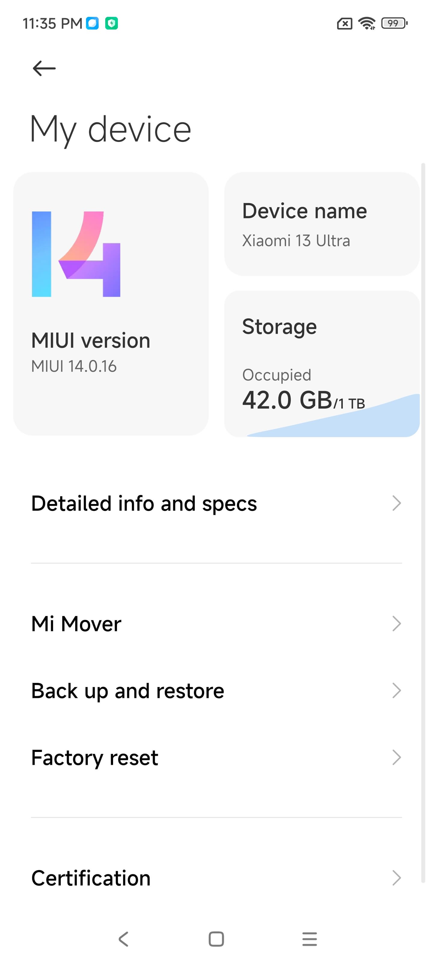 В качестве программной платформы Xiaomi 13 Ultra использует версию ОС Android 13 с собственной оболочкой. Тут надо отметить, что мы приобрели китайскую версию смартфона, которая работает на китайской прошивке MIUI 14. Русского языка и предустановленных сервисов Google в ней изначально нет, но можно доустановить фирменный магазин Google Play. Также очень много предустановленного софта, в том числе только с иероглифами. Впрочем, для любителей бренда Xiaomi и заказов из китайских онлайн-магазинов всё это не будет неожиданностью. Тем более, что можно приобрести и глобальную версию модели.