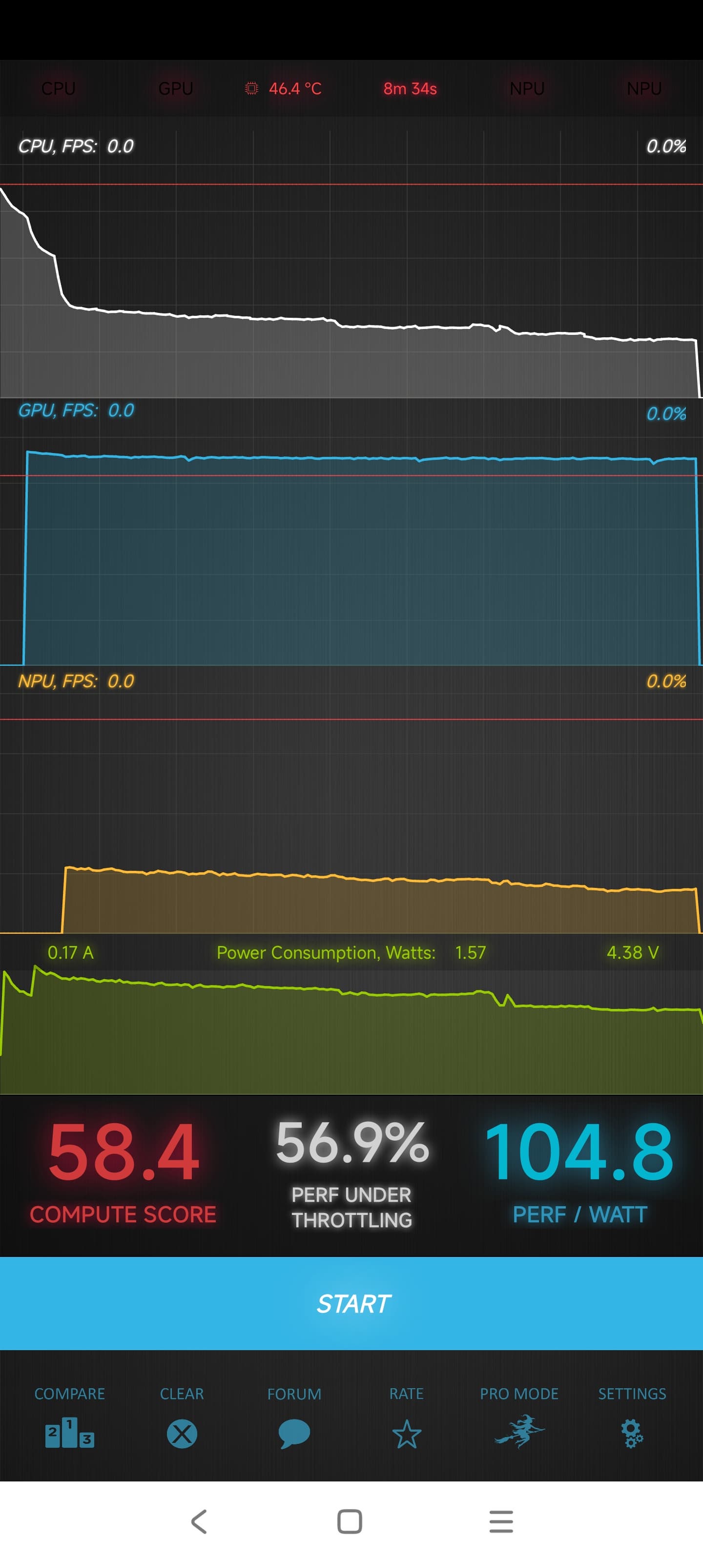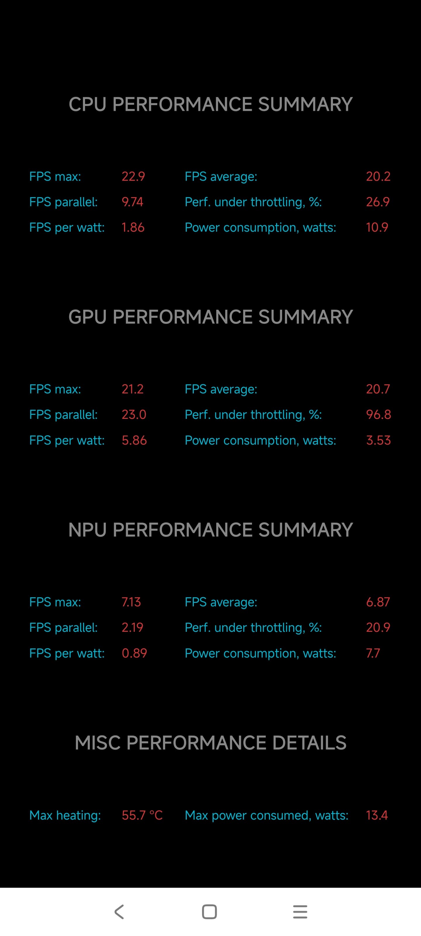 Тест на снижение производительности при нагреве мы проводим с помощью программы Burnout Benchmark, которая позволяет нагружать CPU, GPU и NPU: