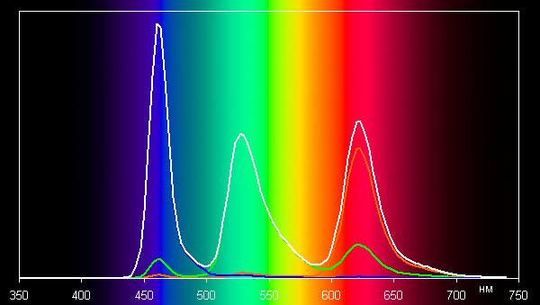 При выборе профиля Original баланс оттенков на шкале серого хороший, поскольку цветовая температура близка к стандартным 6500 К, а отклонение от спектра абсолютно черного тела (ΔE) ниже 10, что для потребительского устройства считается приемлемым показателем. При этом цветовая температура и ΔE мало изменяются от оттенка к оттенку — это положительно сказывается на визуальной оценке цветового баланса. (Самые темные области шкалы серого можно не учитывать, так как там баланс цветов не имеет большого значения, да и погрешность измерений цветовых характеристик на низкой яркости большая.)