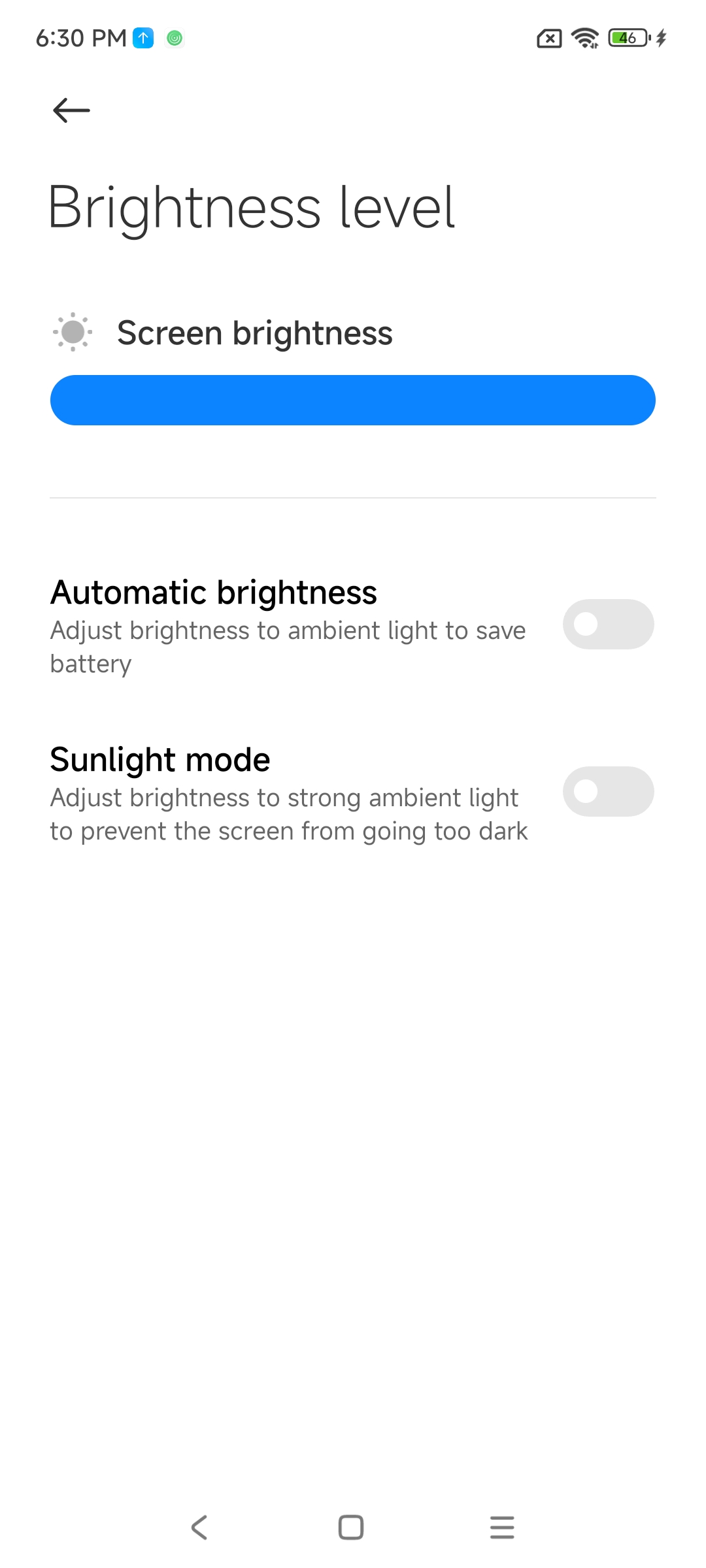 При ручном управлении яркостью и при выводе белого поля во весь экран максимальное значение яркости составило около 480 кд/м² в обычных условиях, а на очень ярком свету и в случае автоматической регулировки оно может повышаться до 1160 кд/м². Это очень высокое значение. Также нужно учитывать, что для этого типа экрана чем меньше площадь белого на экране, тем он светлее, то есть фактическая максимальная яркость белых участков будет почти всегда выше указанных значений. В итоге, учитывая отличные антибликовые свойства, читаемость днем на солнце, должна быть на хорошем уровне. При ручном управлении и при включении функции Sunlight mode на очень ярком свету яркость повышается до 480 кд/м², даже если она была установлена на меньшее значение.