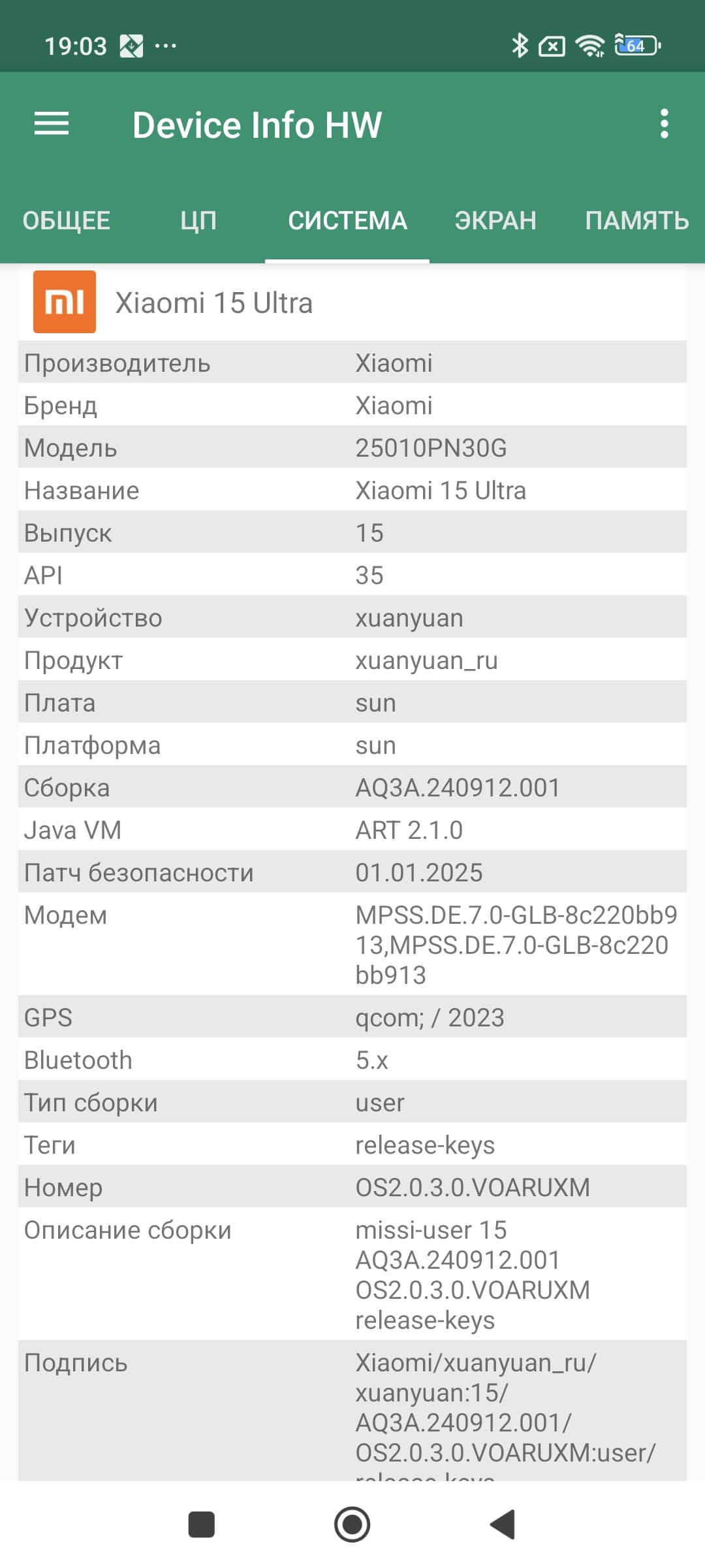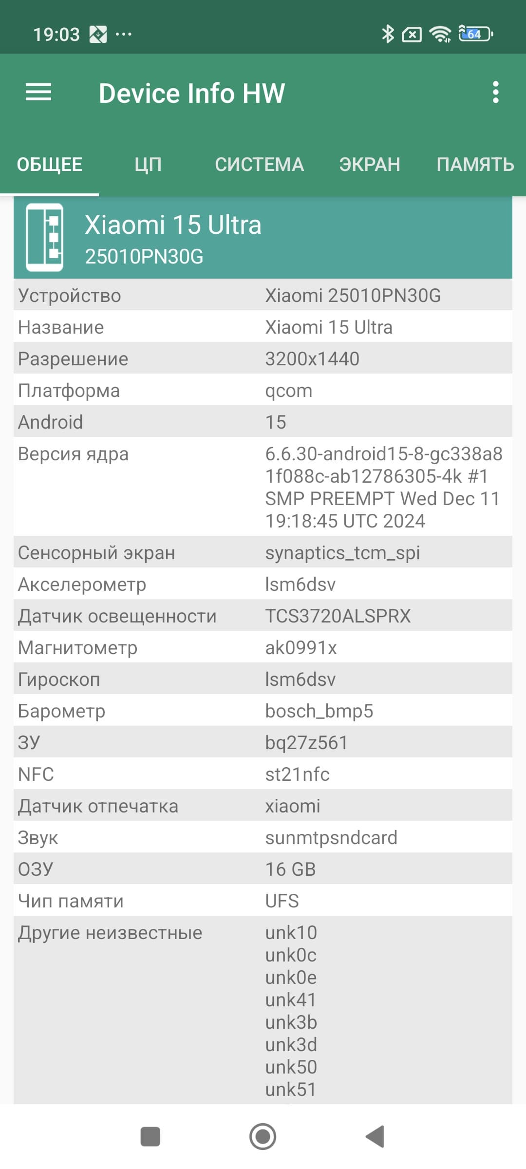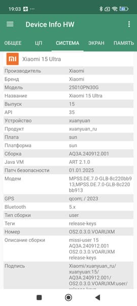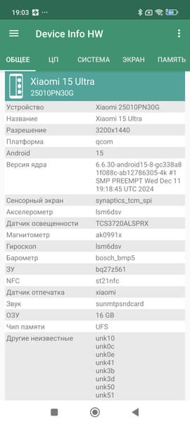 Основные характеристики Xiaomi 15 Ultra (модель 25010PN30G)