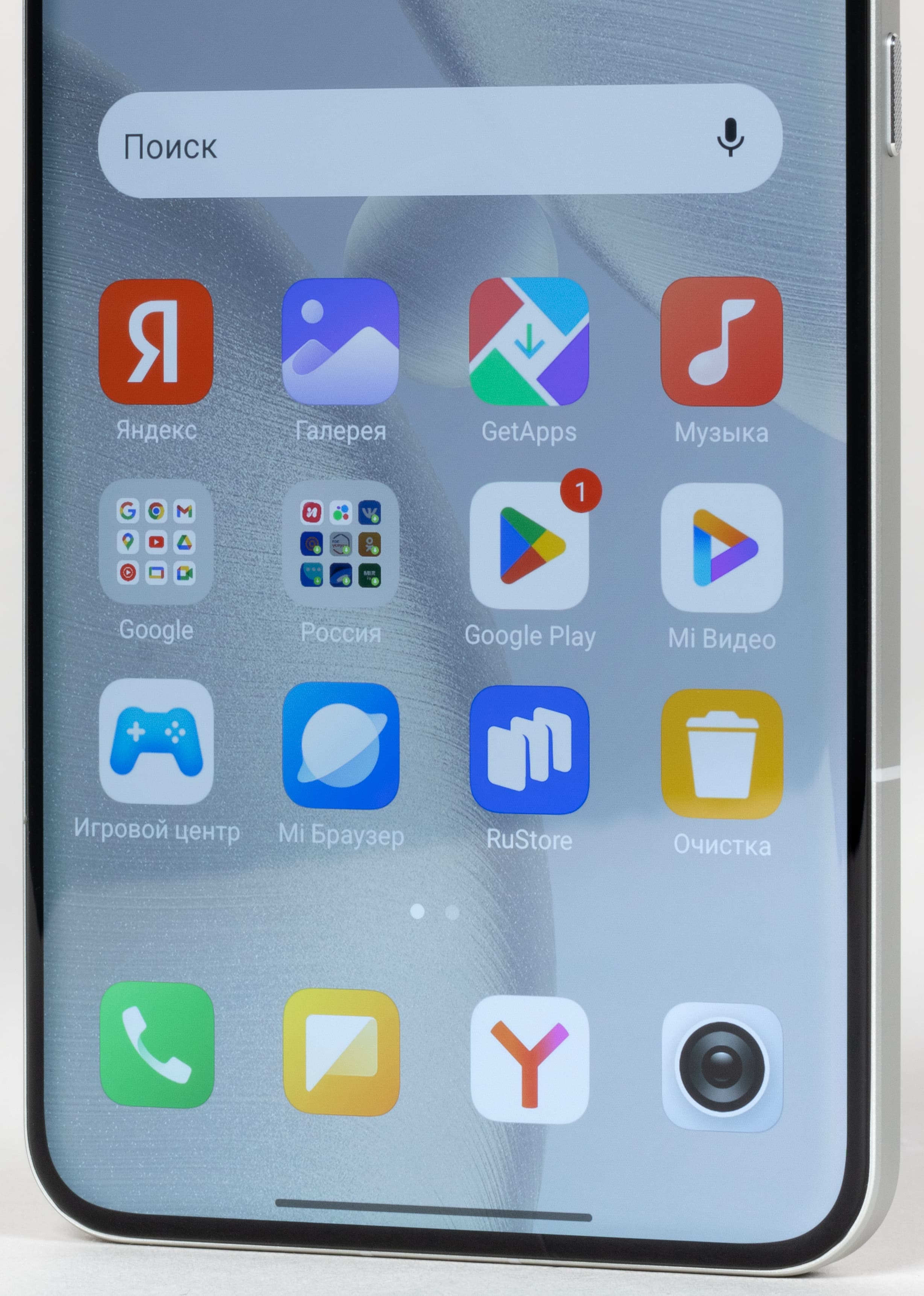 Единственный положительный момент заключается в том, что широкий выступ расположен по центру, так что позволяет устройству лежать на столе относительно устойчиво при работе с экраном. Стекло экрана имеет немного выпуклые края, как модно в этом сезоне.