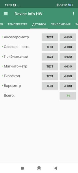 - Датчики приближения и освещения, магнитного поля, акселерометр, гироскоп, барометр