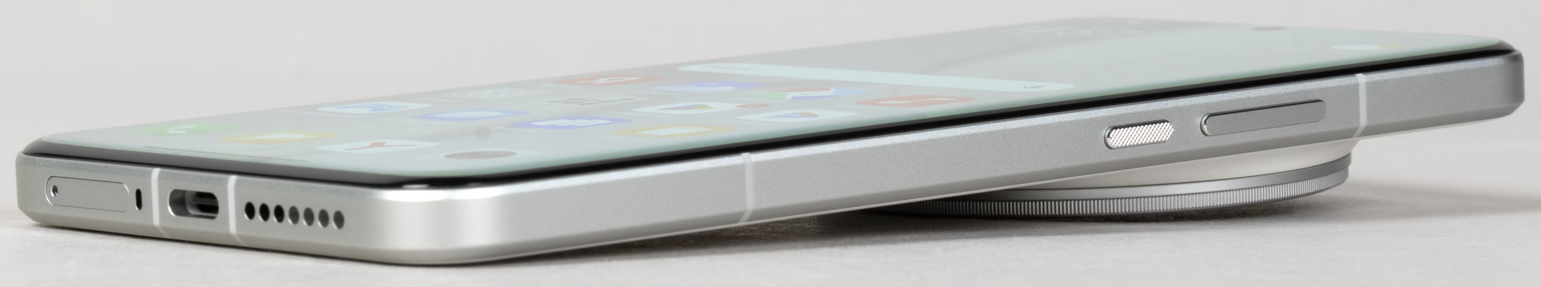 Нижний торец содержит динамик, микрофон и разъем USB Type-C. 3,5-миллиметровый аудиовыход для проводной гарнитуры отсутствует.
