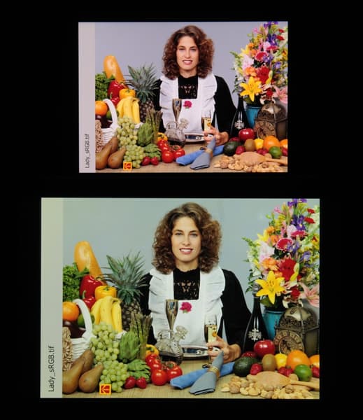 Отметим, что на экранах с уширенным цветовым охватом (без соответствующей коррекции) цвета́ обычных изображений, оптимизированных для устройств sRGB, выглядят неестественно насыщенными. Отсюда и рекомендация: в большинстве случаев смотреть кино, фотографии и все естественное лучше при выборе профиля Исходный. При этом, если в изображении прописан отличный от sRGB профиль, то смотреть его лучше с использованием штатной программы Галерея.