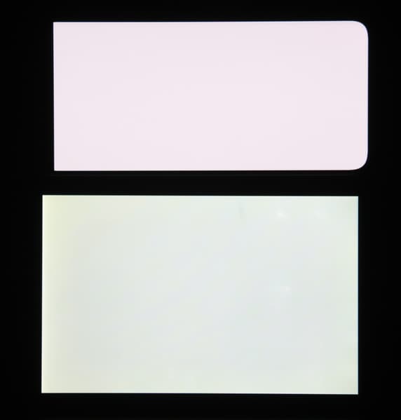 Отметим хорошую равномерность яркости и цветового тона белого поля (за исключением едва видимого затемнения и изменения оттенка к загнутым краям).