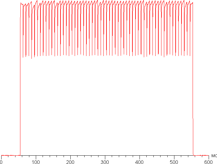 Видно, что скважность модуляции низкая, в итоге видимого мерцания нет.