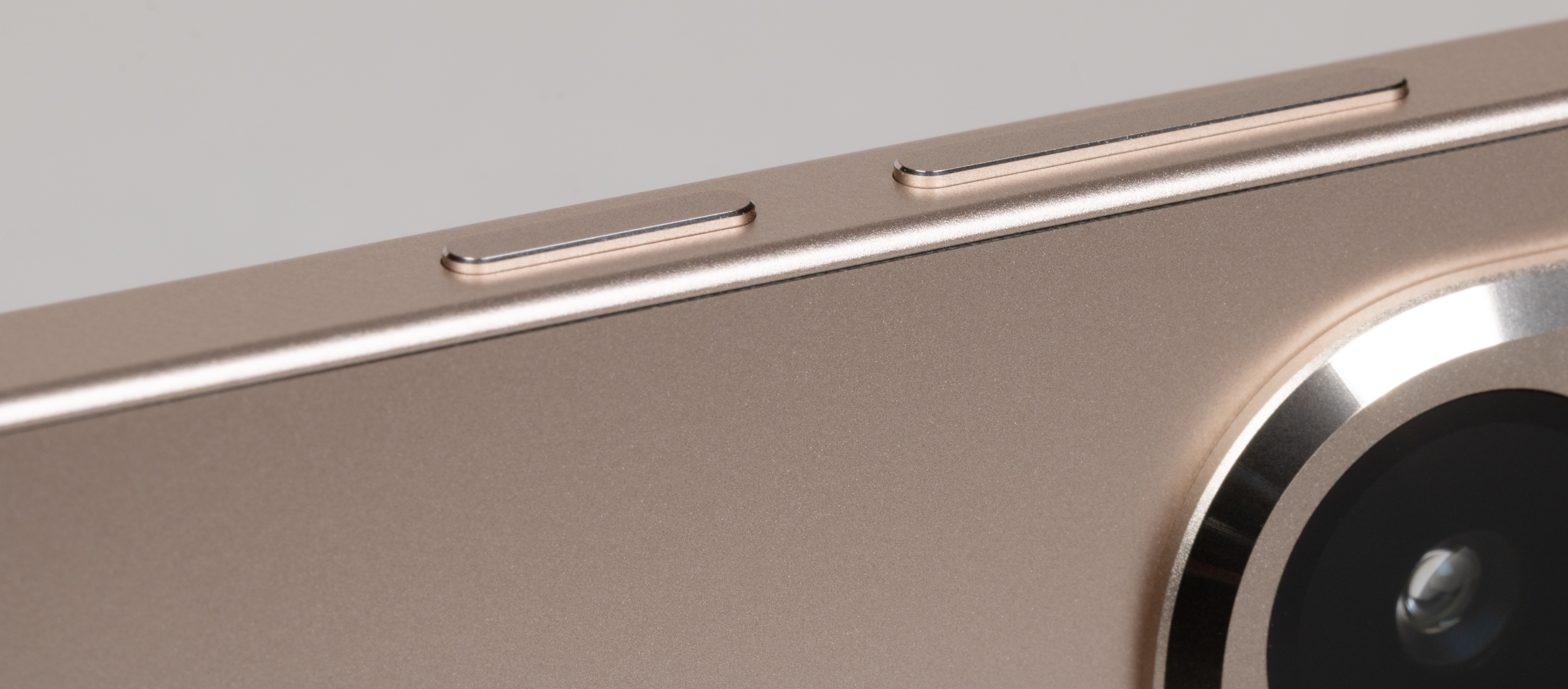 Верхний торец не содержит отверстий для динамика, здесь установлен только дополнительный микрофон. Тем не менее, стереозвук есть: он реализован за счет разговорного динамика, звук которого направлен на пользователя от фронтальной плоскости. Неравнозначные стереодинамики издают нормального качества относительно чистый и громкий звук.
