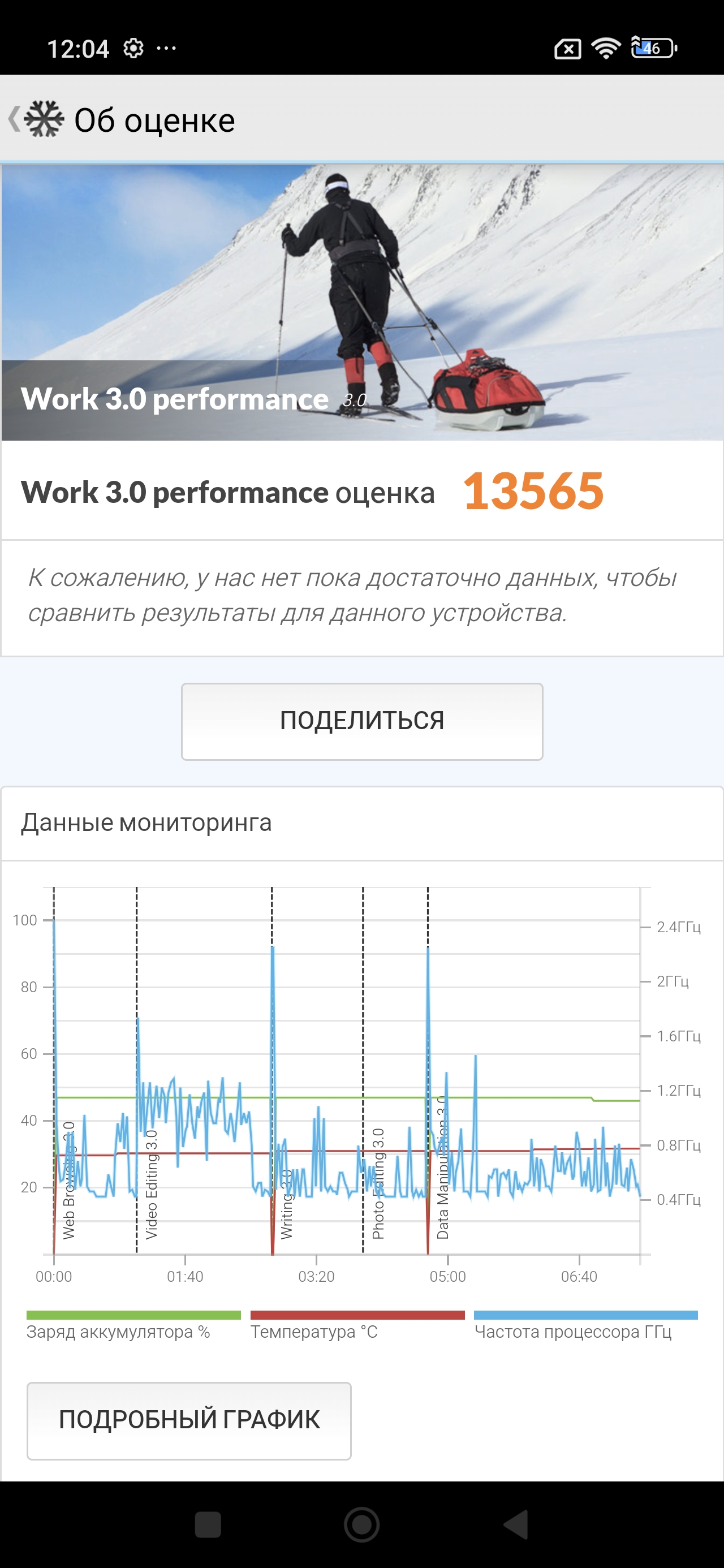 Тест на снижение производительности при нагреве мы проводим с помощью программы Burnout Benchmark, которая позволяет нагружать CPU, GPU и NPU. Уровень тротлинга, согласно тестам, не очень высок, а GPU (что важно для игр) и вовсе почти не тротлится.