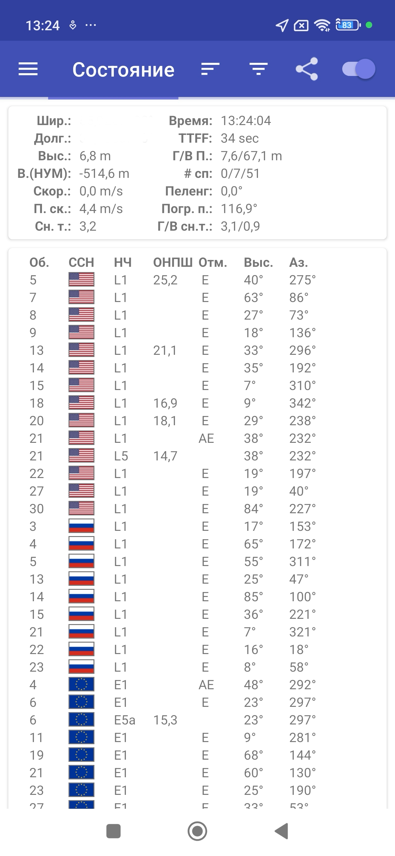 - GPS, Galileo, Глонасс, QZSS, BDS