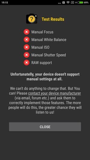 Интерфейс управления камерой точно такой же, как у всех аппаратов с интерфейсом MIUI. Меню с дополнительными режимами выдвигается боковым жестом, меню настроек вызывается по нажатию на пиктограмму с изображением шестеренки. Разрешение фотосъемки, как обычно, не конкретизировано: нельзя напрямую установить размер снимка, можно лишь выбирать между завуалированными определениями, типа «высокое, нормальное или низкое качество». В ручном режиме есть возможность влиять на баланс белого, выдержку, уровень ISO (максимальная чувствительность — ISO 3200), регулировать контрастность, насыщенность и четкость. Также имеется несколько дополнительных режимов, таких как панорамный, ночной, рыбий глаз и другие. Сторонним приложениям управление этими настройками через Camera2 API недоступно, нет возможности и сохранять снимки в RAW.