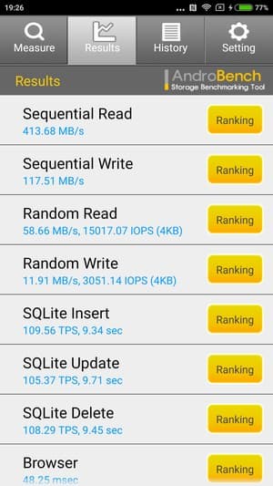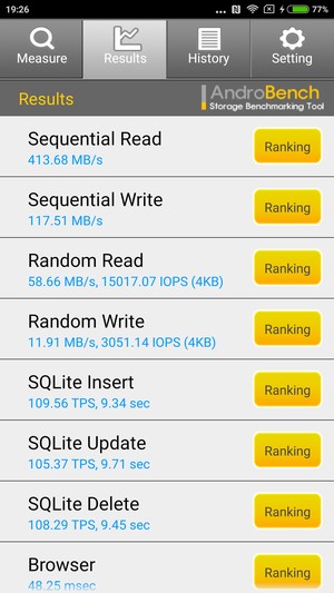 Также в аппарате есть поддержка Bluetooth 4.2, NFC, поддерживаются два диапазона Wi-Fi (2,4 и 5 ГГц) MU-MIMO, Wi-Fi Direct, Wi-Fi Display, можно организовать беспроводную точку доступа через каналы Wi-Fi или Bluetooth. Разъем USB Type C поддерживает подключение внешних устройств в режиме USB OTG. От порта USB 3.0 настольного ПК файл размером 4 ГБ передается на смартфон по кабелю в течение 135 секунд (около 30 МБ/с), что скорее соответствует спецификациям USB 2.0, но никак не USB 3.0. На этом месте стоит заметить, что Meizu Pro 6 в режиме USB 3.0 выполняет эту же самую передачу всего за 53 секунды (около 75 МБ/с).