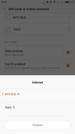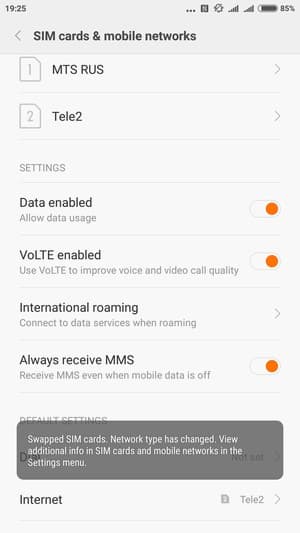 Смартфон обеспечивает работу с двумя SIM-картами. Типично для оболочки MIUI в настройках можно задать определенную SIM-карту для передачи данных и голосовых вызовов, но для отправки SMS-сообщений необходимо каждый раз выбирать желаемую карту.