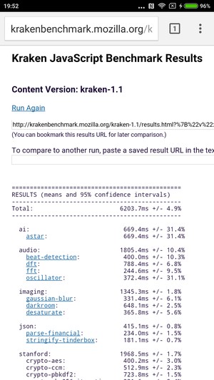 Что касается бенчмарков для оценки скорости движка javascript, то стоит всегда делать скидку на то, что в них результаты существенно зависят от браузера, в котором запускаются, так что сравнение может быть истинно корректным только на одинаковых ОС и браузерах, а такая возможность имеется при тестировании не всегда. В случае с ОС Android мы всегда стараемся использовать Google Chrome.