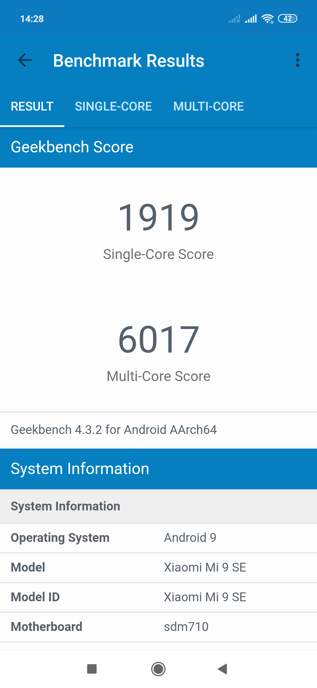 | Xiaomi Mi 9 SE (Qualcomm Snapdragon 712) | Xiaomi Mi 9 (Qualcomm Snapdragon 855) | Huawei Mate 20 (Huawei Kirin 980) | Oppo RX17 Pro (Qualcomm Snapdragon 710) | Samsung Galaxy A70 (Qualcomm Snapdragon 675) | |