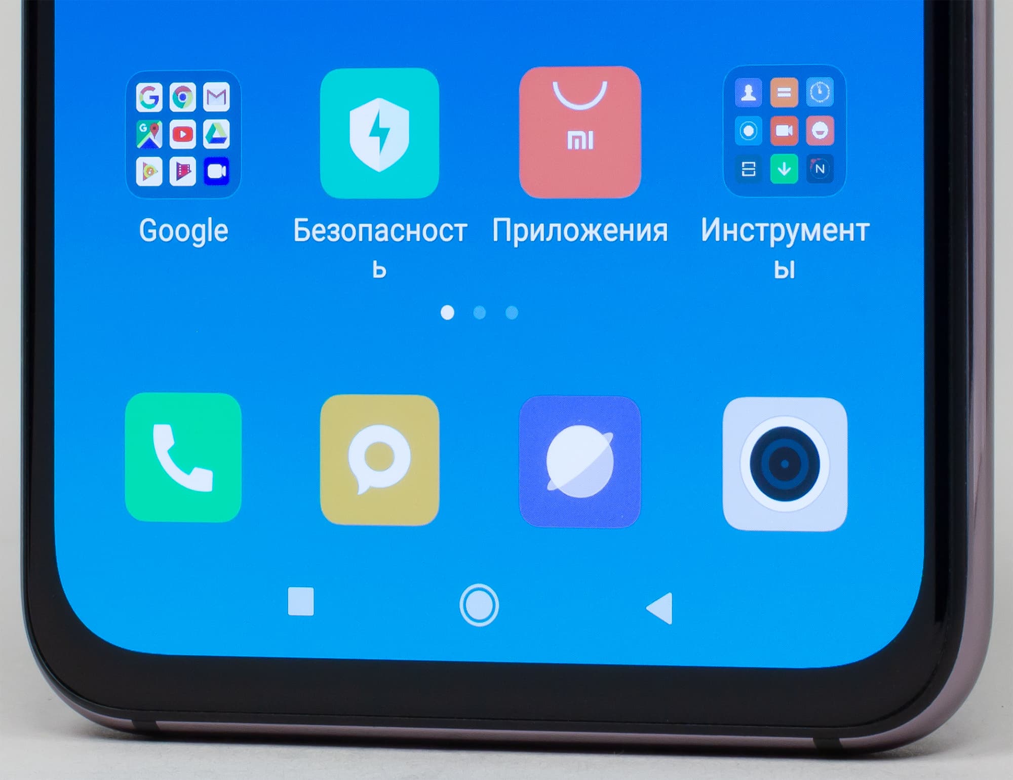В верхней части экрана присутствует небольшой каплевидный вырез под камеру, отнимающий минимальное количество места у дисплея, и это самый лучший вариант на сегодняшний день. С довольно тонкими рамками такой дисплей занимает около 90% площади передней поверхности.