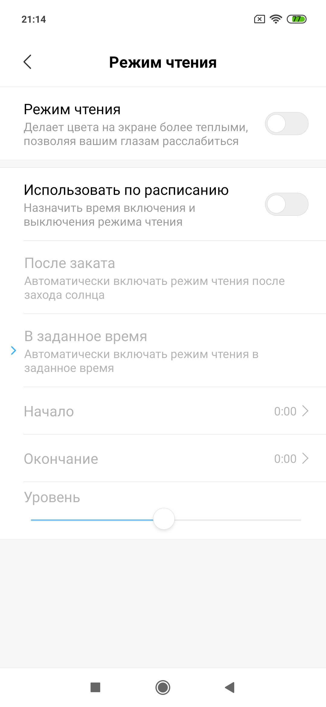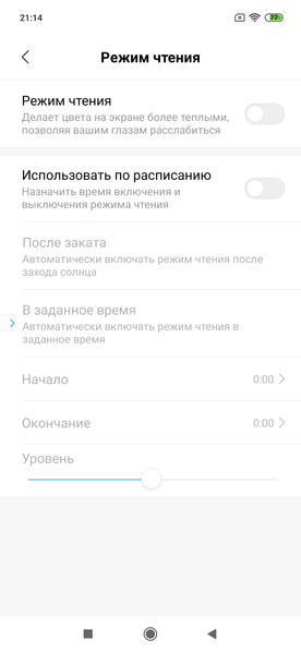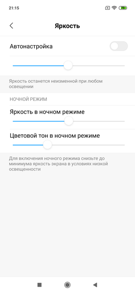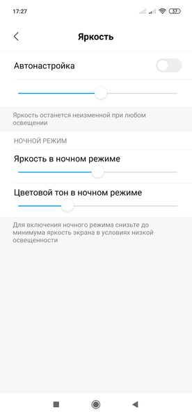 Конечно, есть режим с уменьшенной интенсивностью синей компоненты. Напомним, что, в принципе, яркий свет может приводить к нарушению суточного (циркадного) ритма (см. статью про iPad Pro с дисплеем 9,7 дюйма), но все решается подстройкой яркости до комфортного уровня, а искажать цветовой баланс, уменьшая вклад синего, нет абсолютно никакого смысла. Есть и еще один вариант управления яркостью и цветовым тоном: привязка выбора минимальной яркости и тона к установке яркости на минимум (в ручном или в автоматическом режиме). Пользы от данной функции также не наблюдается: