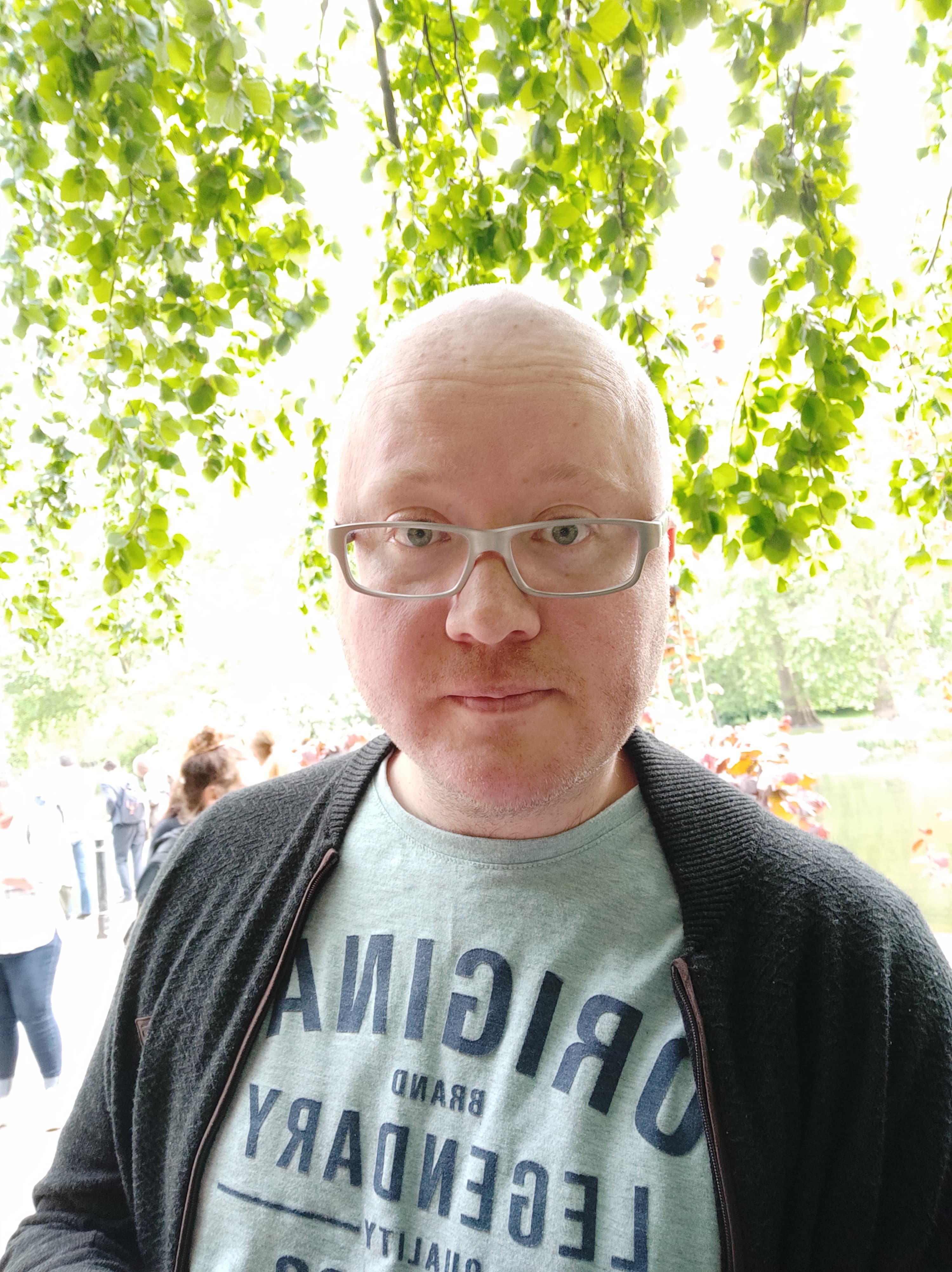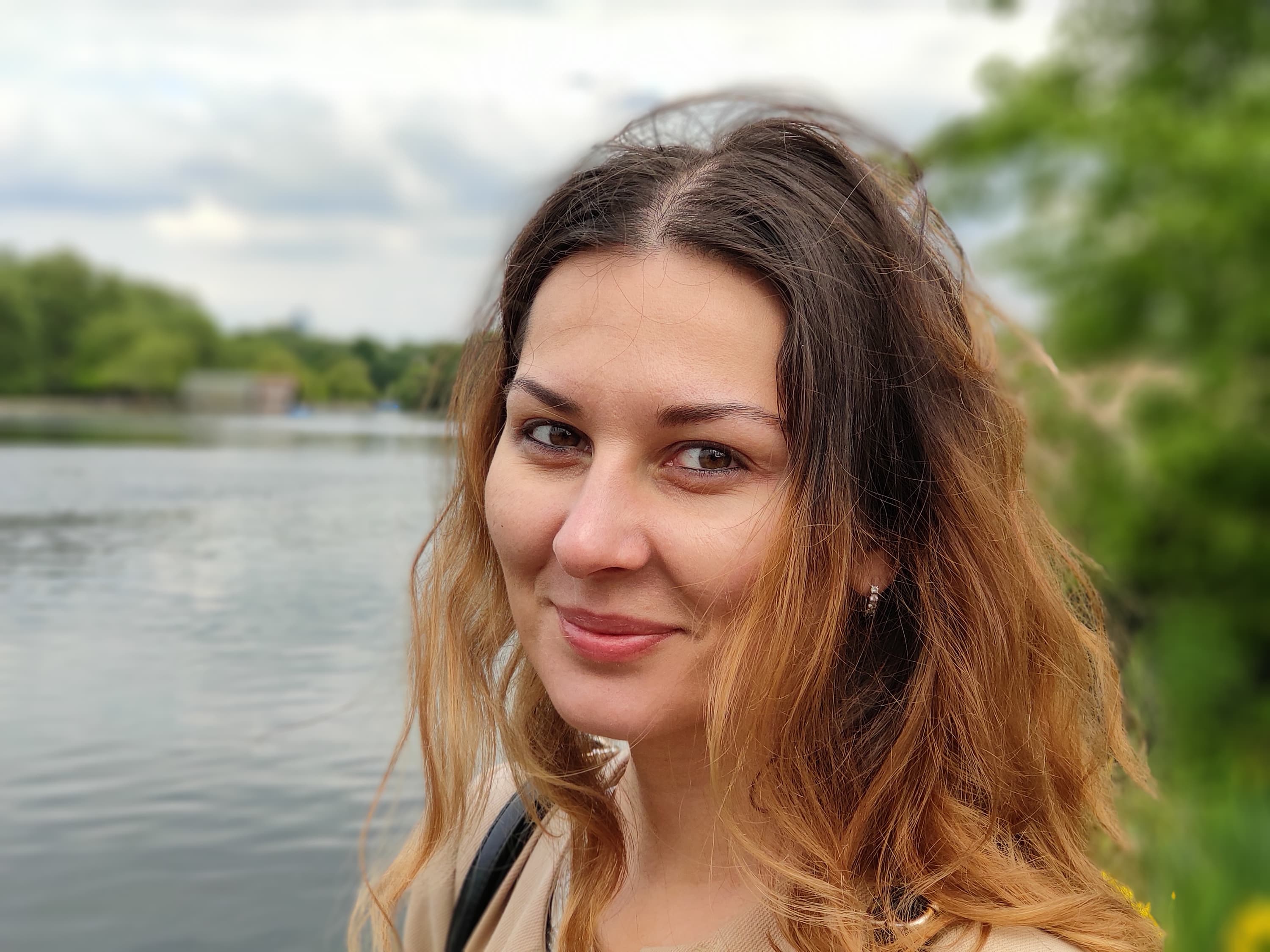 Фронтальная камера оснащена сенсором с разрешением 20 Мп и оптикой с апертурой f/2,0. Камера хорошо передает детали, аккуратно вырезает объект съемки, размывая фон, но всегда заботится в первую очередь о том, чтобы адекватно показать лицо автопортретируемого, поэтому иногда окружающий мир может быть, например, пересвечен — тут не обойтись без ручной подстройки. В целом камера очень достойная, если к ней приноровиться.
