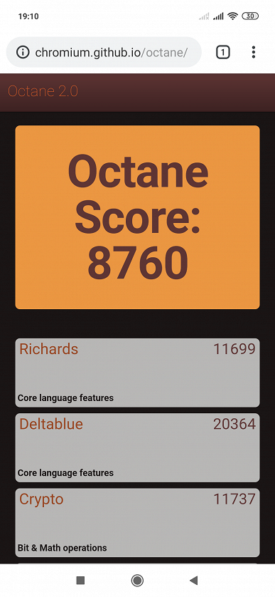 | Google Octane 2 (больше — лучше) | 8760 | 25361 | 20565 | 10127 | 16736 |