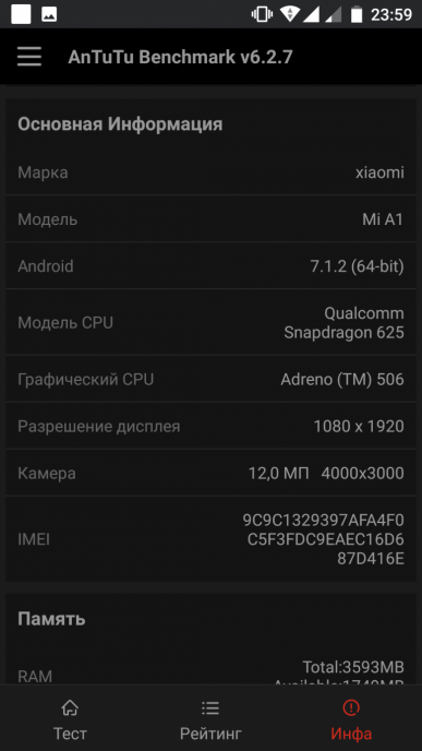 Qualcomm Snapdragon 625 — платформа, предназначенная для смартфонов среднего уровня. Это уже не самый интересный чип в своей категории, ему на смену пришел Snapdragon 626 с более высокой частотой ядер (2,2 ГГц вместо 2,0 ГГц). Однако Xiaomi Mi A1 предназначен для развивающихся рынков и предлагается по невысокой цене, так что стоимость комплектующих явно принималась во внимание при создании этого смартфона.