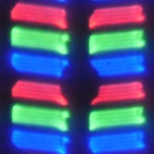 В данном смартфоне используется матрица типа IPS. Микрофотографии демонстрируют типичную для IPS структуру субпикселей: