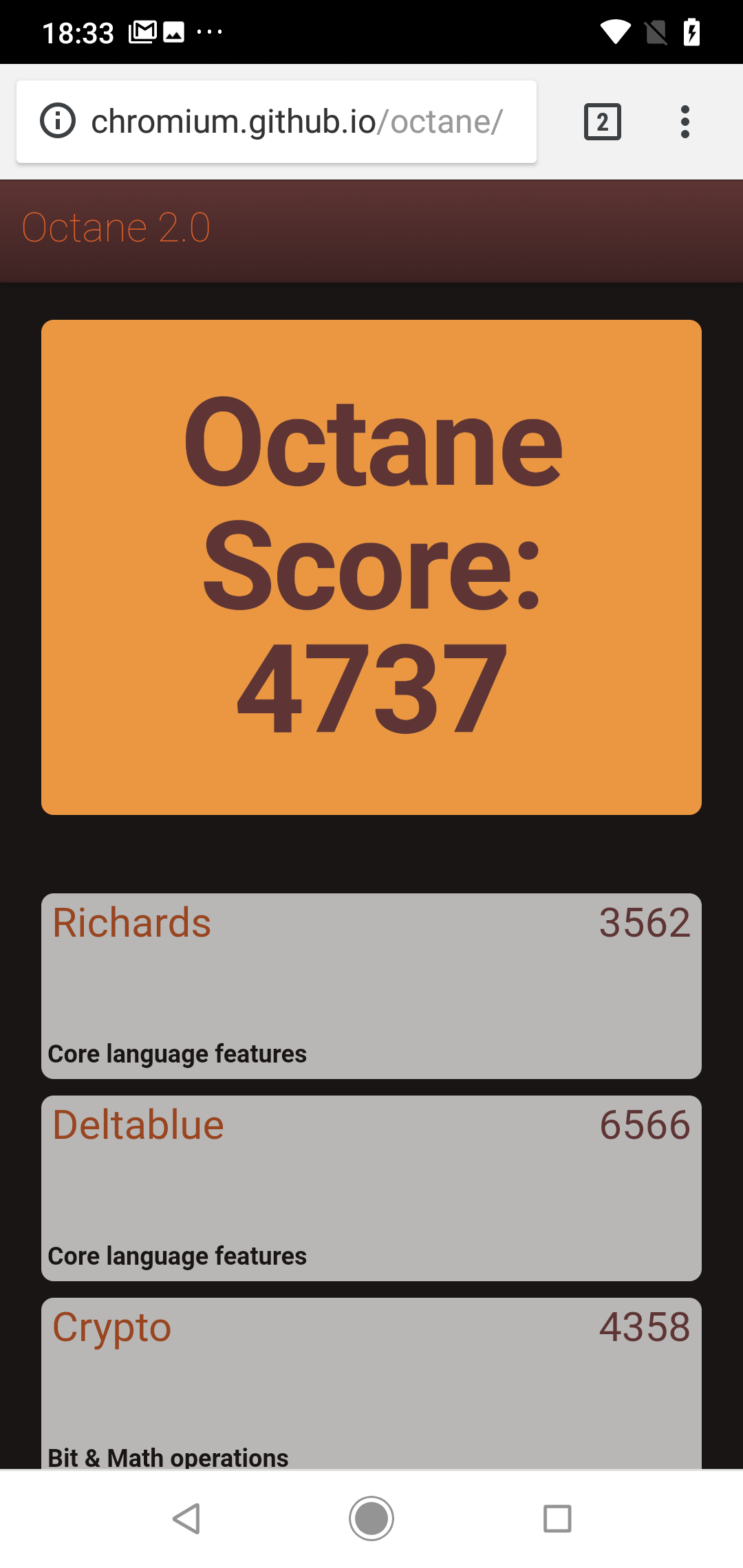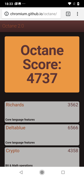 | Google Octane 2 (больше — лучше) | 4737 | 10022 | 8875 | 9521 | 9168 |