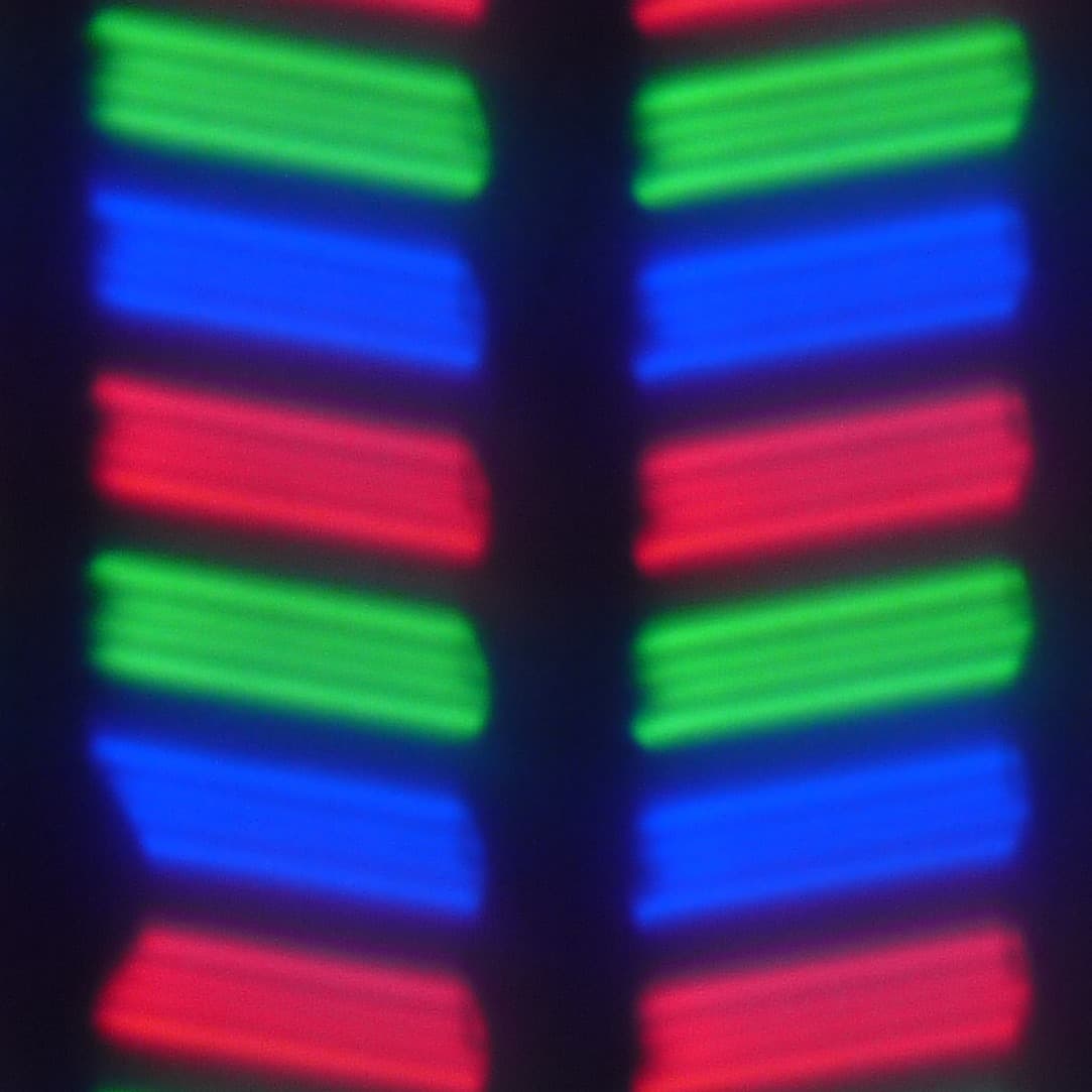 В данном смартфоне используется матрица типа IPS. Микрофотографии демонстрируют типичную для IPS структуру субпикселей:
