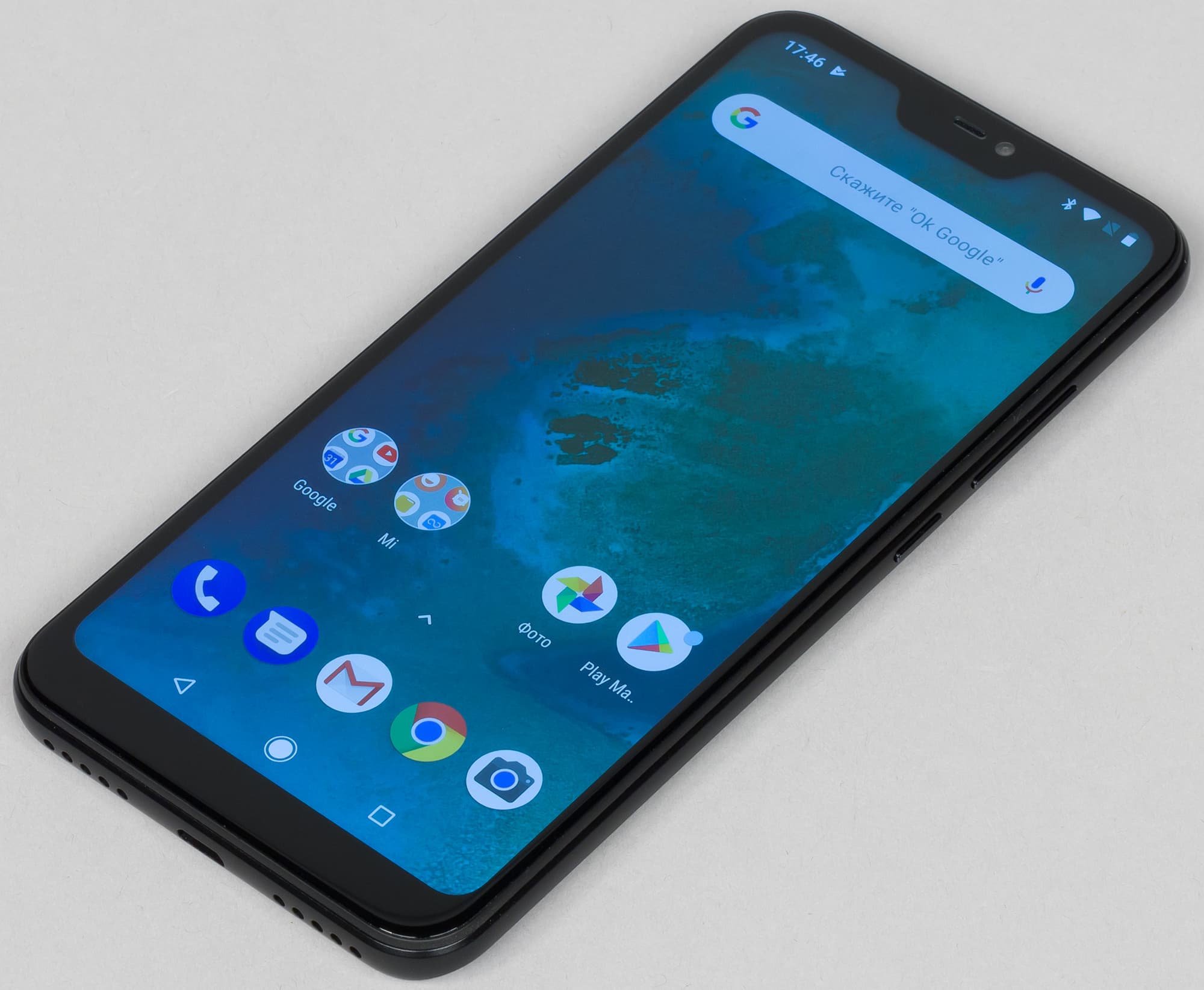 И еще один приятный момент: поскольку корпус здесь не столь тонкий и легкий, да и камера выпирает не так сильно, то смартфон лежит надежно и устойчиво, не покачивается, словно пресс-папье, на столе, как его старший брат. У того с этим настоящие проблемы: Xiaomi Mi A2 прыгает и крутится на твердой поверхности.