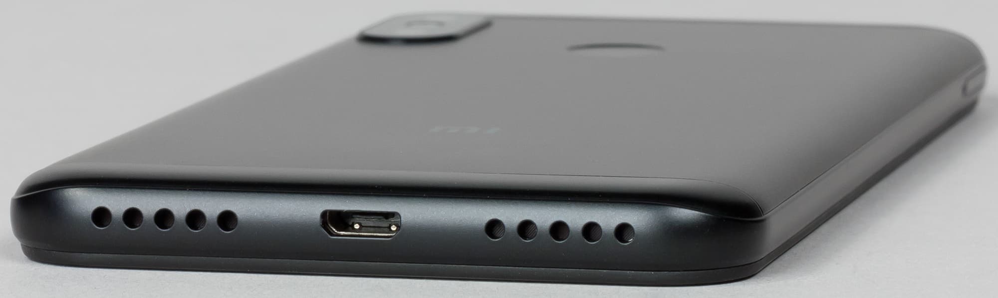 Основной динамик выведен в нижний торец, там же располагается и разъем Micro-USB. Опять же, налицо искусственное разнесение двух родственных моделей: если у Xiaomi Mi A2 был разъем USB Type-C, то здесь, конечно же, должен быть Micro-USB.