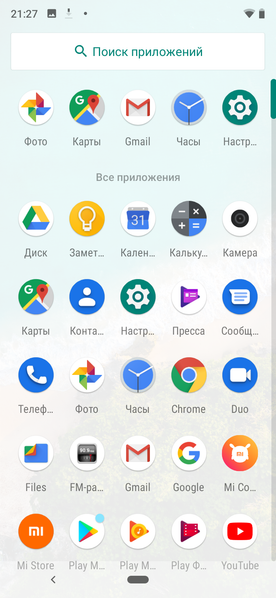Работает Xiaomi Mi А3 на программной платформе Android 9-й версии без фирменной оболочки MIUI. Это одно из главных отличий смартфонов, предлагаемых по программе Android One (которые, к слову, производит не только Xiaomi, но и, например, Nokia), от остальных мобильных аппаратов Xiaomi. Фирменное оформление дизайнеров Google (Material Design), быстрота и легкость, аскетичность во всем — характерные признаки «чистой» Android. Но даже здесь разработчики установили пару собственных программ (Mi Store и Mi Community), а также использовали собственное приложение камеры. Из нововведений можно отметить появление во многих приложениях модной темной темы, которую, впрочем, некоторые сразу меняют обратно на более привычную светлую, ибо то, что хорошо для чтения книг, далеко не всегда удобно для работы с интерфейсом, файлами, окнами и пр.
