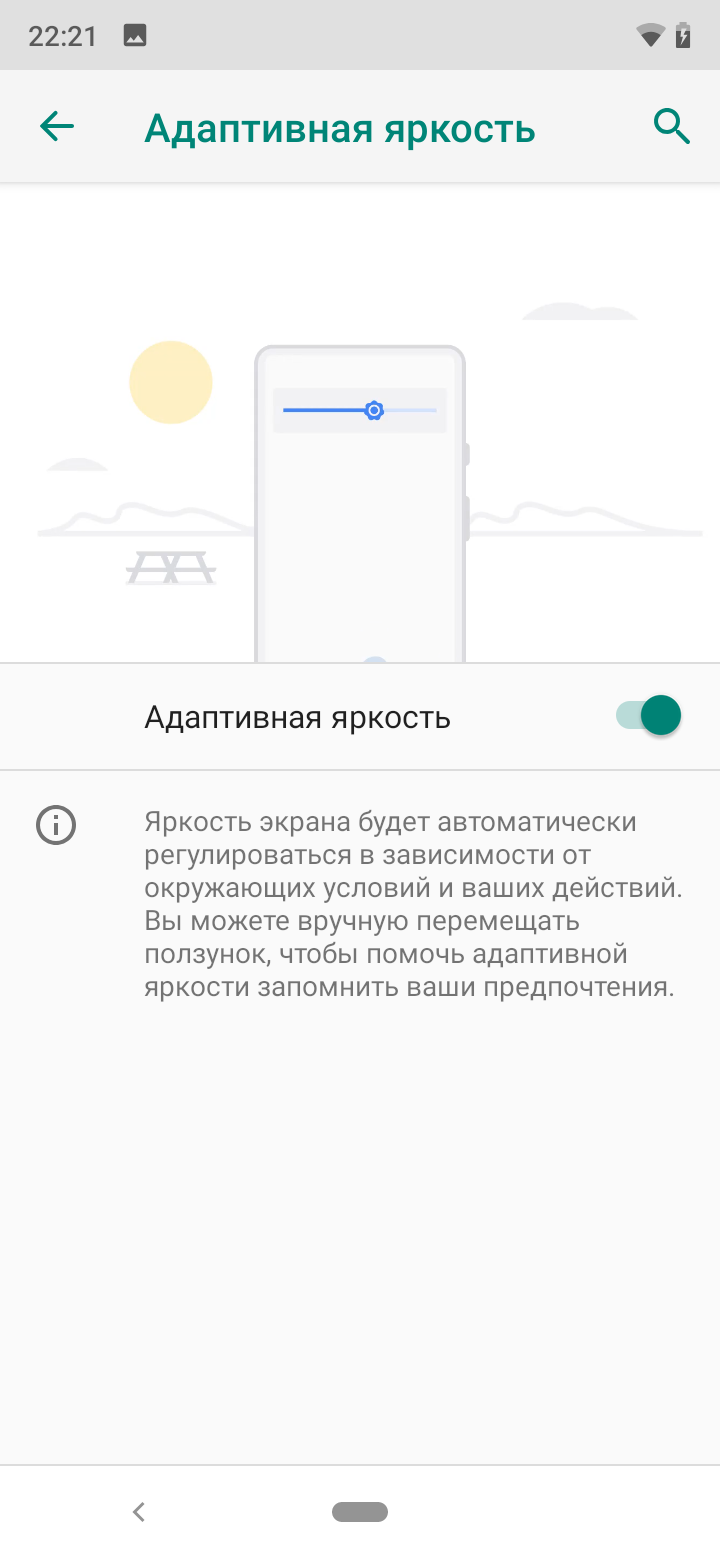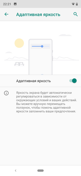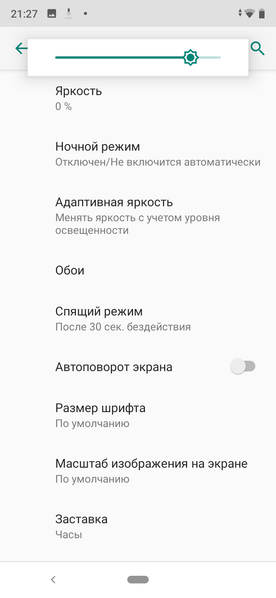 При ручном управлении яркостью и при выводе белого поля во весь экран максимальное значение яркости составило около 340 кд/м². Нужно учитывать, что в данном случае чем меньше площадь белого на экране, тем он светлее, то есть фактическая максимальная яркость белых участков будет почти всегда немного выше указанного значения. Например, при выводе черного поля на одной половине экрана и белого — на другой, яркость достигает 380 кд/м², что, впрочем, все равно немного. В итоге, даже учитывая хорошие антибликовые свойства, днем на солнце на экране можно будет что-то разобрать, но не более. Минимальное значение яркости — 3 кд/м², поэтому в полной темноте яркость можно понизить до комфортного значения. В наличии автоматическая регулировка яркости по датчику освещенности (он находится близко к верхнему краю левее решетки фронтального громкоговорителя). В автоматическом режиме при изменении внешних условий освещенности яркость экрана как повышается, так и понижается. Работа этой функции зависит от положения ползунка регулировки яркости: им пользователь может попытаться выставить желаемый уровень яркости в текущих условиях.