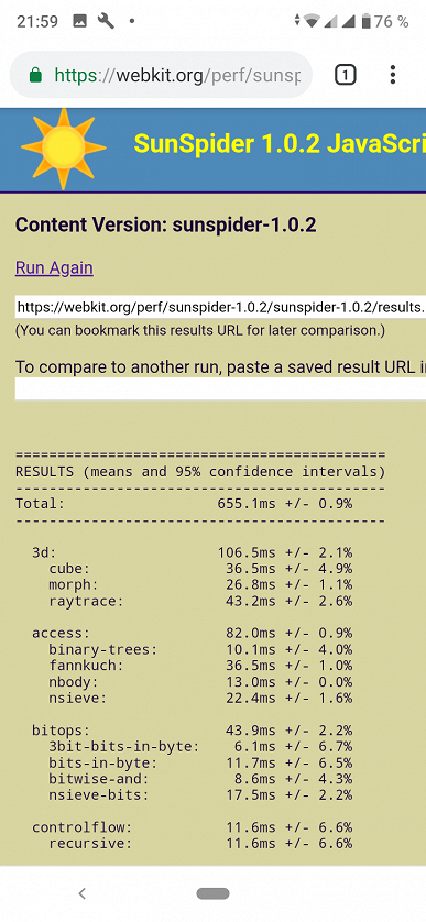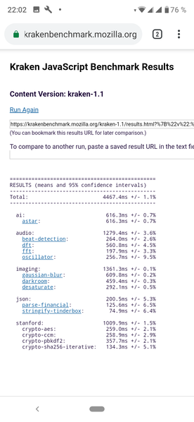 Что касается бенчмарков для оценки скорости движка javascript, то стоит всегда делать скидку на то, что в них результаты существенно зависят от браузера, в котором запускаются, так что сравнение может быть истинно корректным только на одинаковых ОС и браузерах, а такая возможность имеется при тестировании не всегда. В случае с ОС Android мы всегда стараемся использовать Google Chrome.