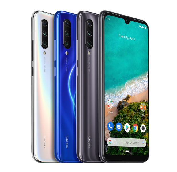 Xiaomi Mi A3 выпускается в трех цветах: сером, синем, а также белом с эффектом перламутра. Полноценной защиты от пыли и влаги корпус смартфона не получил.